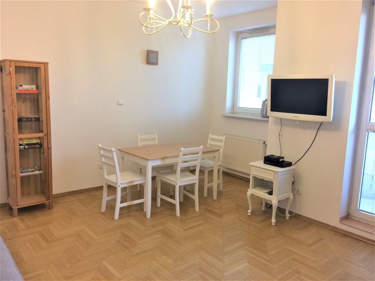 This is a studio apartment with independent entrance in a detached house. This house is located on a very pretty, quiet street at the wall of horse racing. A totally unique place. The apartment has an entrance hall, room, bathroom, mini kitchen, warderobe and a terrace. Very comfortable for 1 - 4 people. There is an extra payment of 10 euro for the third and fourth person as well as for the second one that needs a separate bed. For a dog the additional fee is 20 pln per day.
