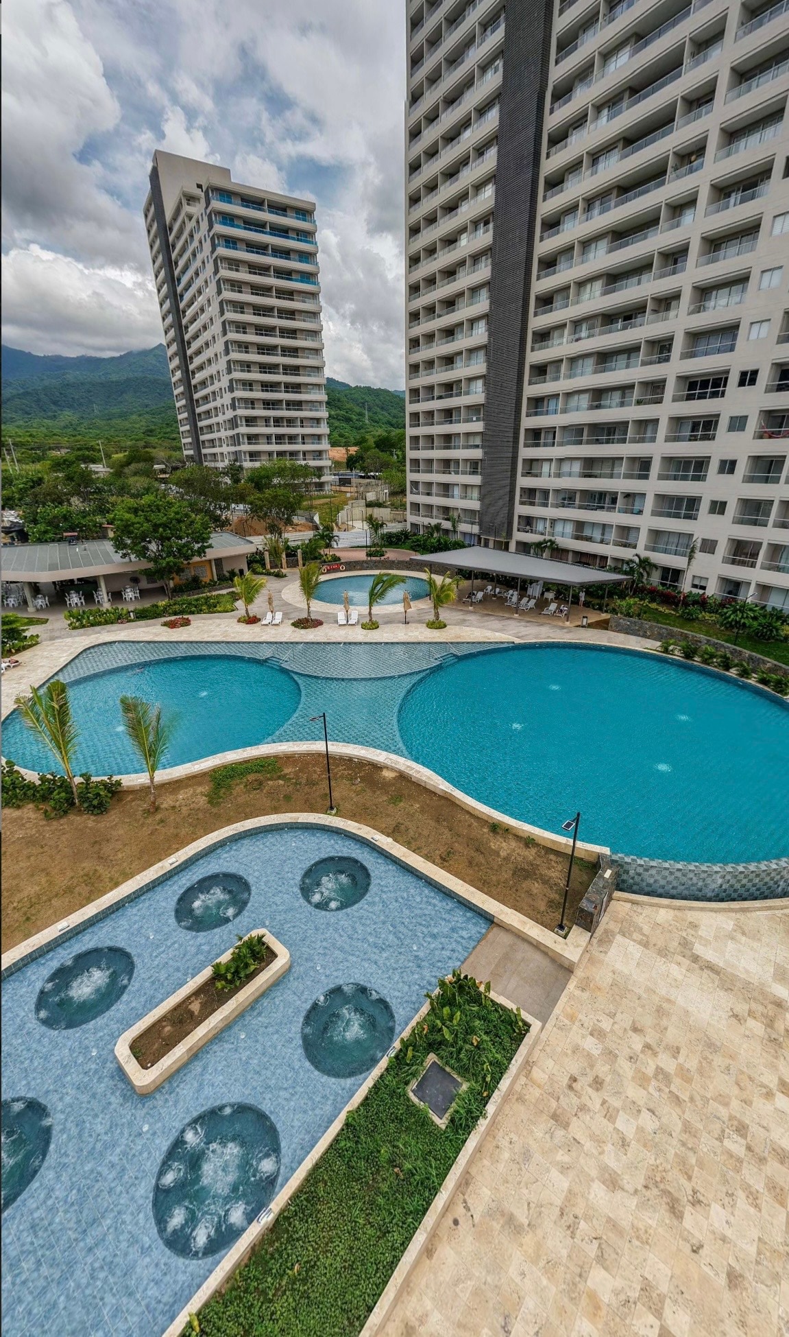 Uma nova maneira de aproveitar Santa Marta com exclusividade e conforto.Experimente um novo local com piscinas, jacuzzi, restaurante e muito mais, em um ambiente moderno e seguro.Localizado em frente a uma linda e tranquila praia, nosso apartamento no 8º andar oferece uma varanda com vista para o mar, cozinha totalmente equipada, ar-condicionado, uma cama de casal e uma cama de solteiro, banheiro, Wi-Fi e um bar para refeições.O lugar ideal para descansar, relaxar e desfrutar de uma estadia incomparável no Caribe.