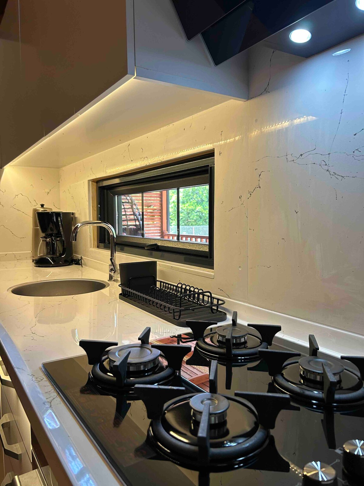 A nossa moradia é construída com materiais naturais e limpos, cabanas acolhedoras combinam design moderno com a harmonia da natureza. Grandes janelas deixam entrar luz natural da manhã e, à noite, pode ver o céu estrelado sem fim. Sinta a atmosfera de tranquilidade!