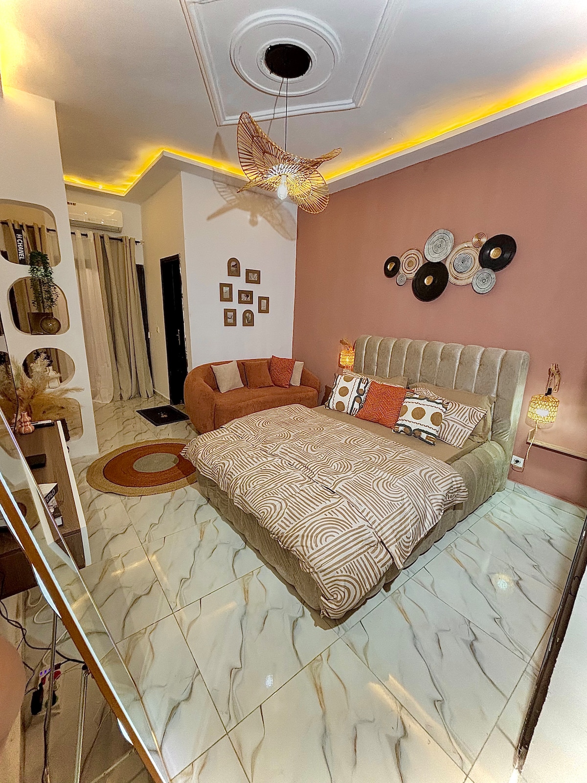 Venez passer un séjour agréable dans ce T2 à la décoration afrochic et élégante. Ce beau logement situé dans une résidence paisible et sécurisée à la Riviera Triangle, est idéal pour les travailleurs, couples ou familles avec 1 enfant. 📅Réservez dès maintenant votre séjour à Abidjan.