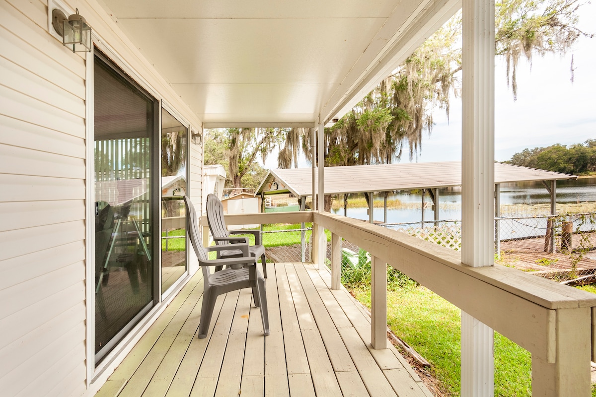 Magical lakefront setting. It is centrally located on the shores of Lake Hernando- the largest lake in the 25 mile chain of lakes known as the Tsala Apopka chain of lakes. Your waterfront retreat includes: Queen memory foam, Wi-Fi, TV, Bluetooth stereo, full kitchen, deck, grill, 2 free kayaks and canoe to explore, dock, fire pit, automatic gate security. This central location is perfect for nearby fun- Inverness 10 min. Crystal River 15 min, Ocala, Rainbow River or Homosassa 20 min
