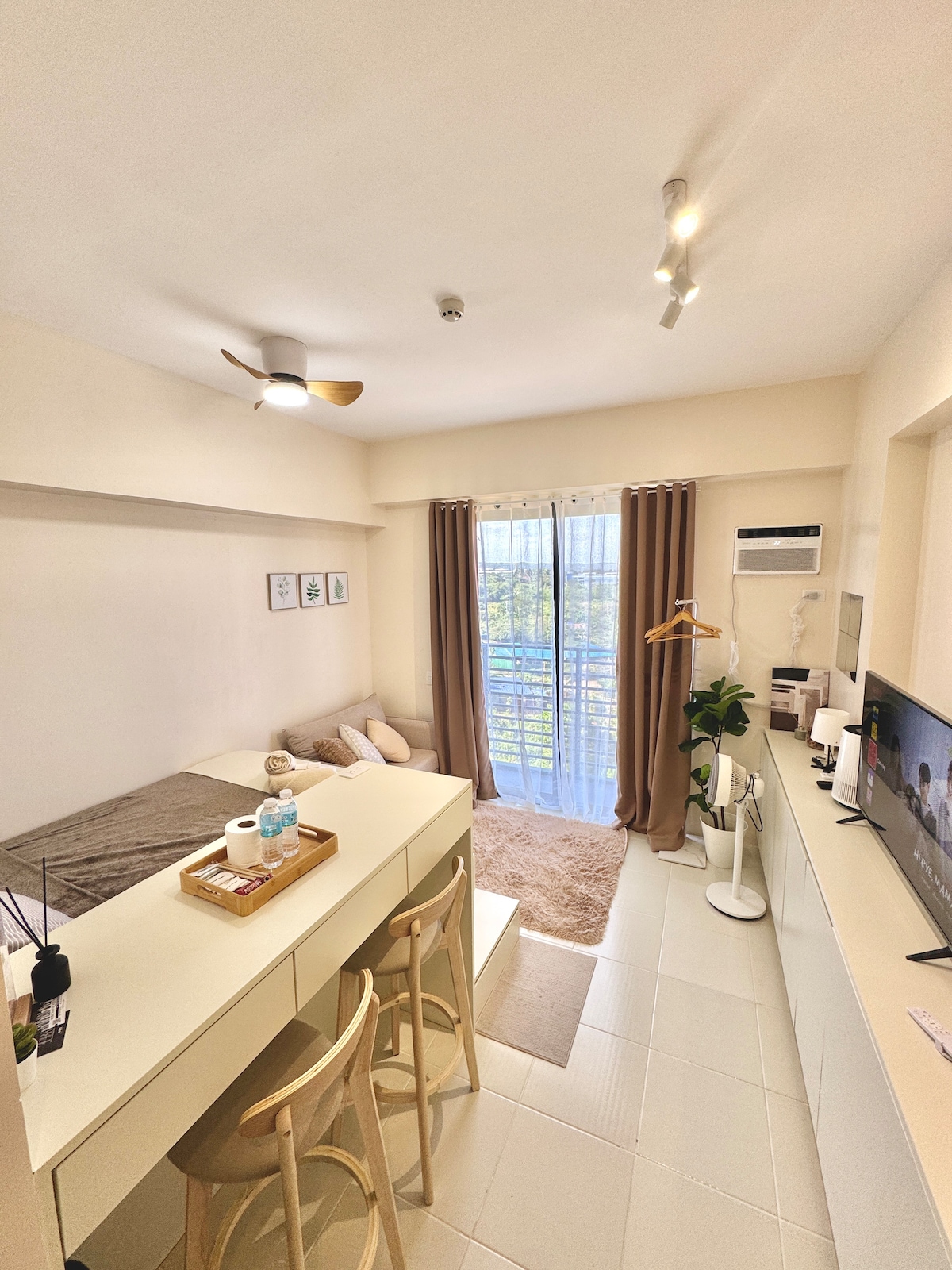 Unwind at Casa Ivy, a cozy Japandi style studio designed for simple and comfortable stays. Clean and thoughtfully furnished with a double bed, sofa bed, fast Wi Fi, Netflix, and a relaxing city view. Located in Greenfield City, close to Paseo, Nuvali, and Landers. Ideal for solo guests, couples, or work from home stays. ✨ The building is pet friendly, but due to health concerns, our unit cannot accommodate pets. Smoking is not allowed inside the unit.