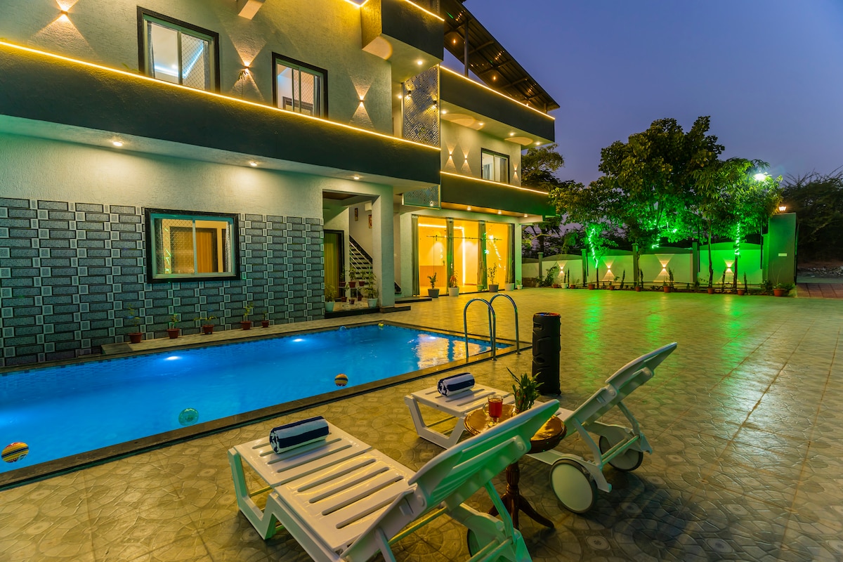 Escape para Jewel Farm – Uma luxuosa villa de 2 quartos com piscina privada em Udaipur com vistas deslumbrantes para a montanha, cozinha completa, jardim exuberante e 3 casas de banho modernas. Ideal para casais, famílias e amantes de animais de estimação. Desfrute de uma estadia tranquila com estacionamento gratuito, Wi-Fi, apoio de zelador e acesso fácil às principais atrações de Udaipur. Quer esteja a planear uma escapadela romântica, uma estadia relaxante ou uma viagem em grupo, a nossa moradia oferece conforto, privacidade e momentos inesquecíveis. Reserve hoje a sua estadia perfeita em Udaipur!