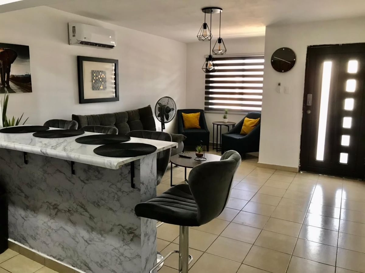 Facturamos. Escape para uma casa de estilo boutique acolhedora, moderna e recentemente renovada. A 19 minutos do aeroporto e a 35 minutos do centro de Monterrey, em privado com vigilância 24 horas por dia, 7 dias por semana, perto de parques industriais e lojas. Desfrute de casas de banho boutique, quartos com ar condicionado e aquecimento, mini ecrãs LED de 75"com som Bang & Olufsen na sala e no quarto. Aplicações de streaming, Xbox, jogos de tabuleiro e pátio com televisão, grelhador e mobiliário de exterior. Mobiliário com pedra Saint Laurent. Tudo para viver uma ótima experiência.