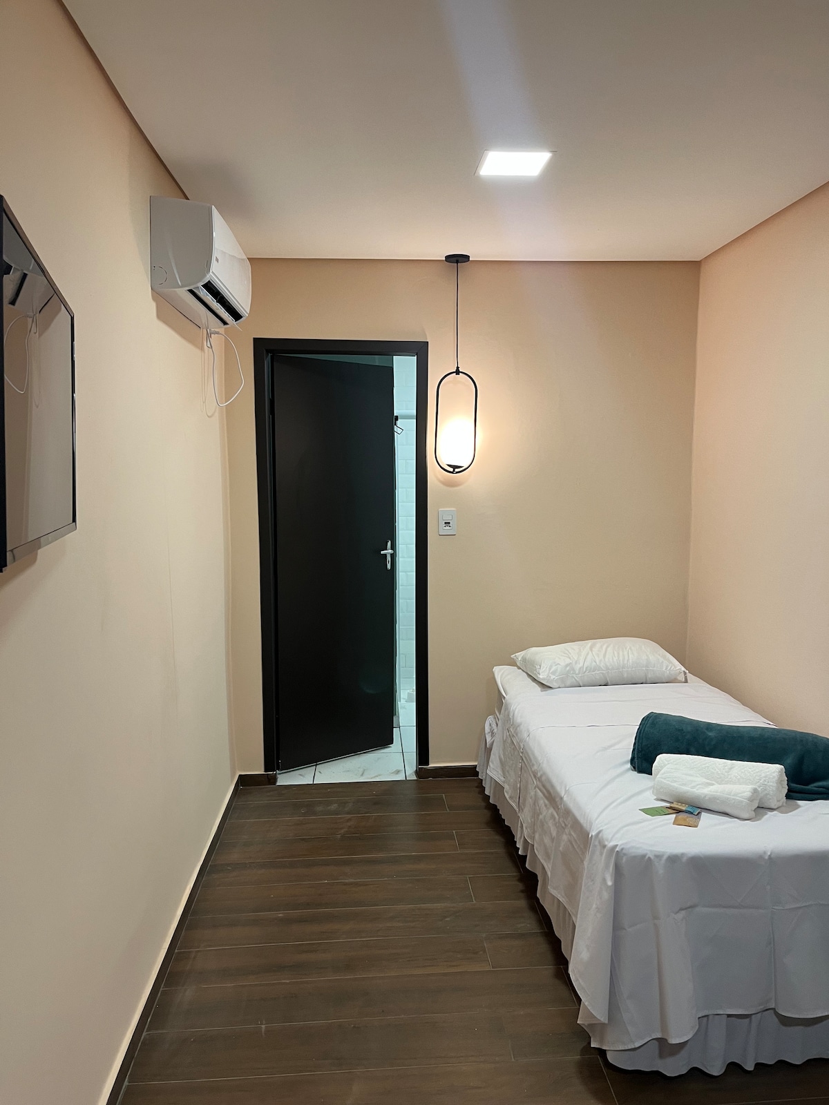 Bem-vindos ao nosso alojamento! O melhor que oferecemos é: _Studio confortável e totalmente equipado localizado em bairro tranquilo, bem perto do centro e do lado da Avenida Cataratas. _Fibra Óptica de até 500mb c/ WiFi 6 _Ar condicionado LG NOVO DUAL INVERTER VOICE _Smart TV FULL HD _Cama QUEEN qualidade Hotel _Jogos de cama/banho NOVOS _Shopping, Restaurantes, Supermercado e Farmácias a poucos minutos de distancia _Área externa para relax _Transfer IN incluso para estadia superior a 15 dias