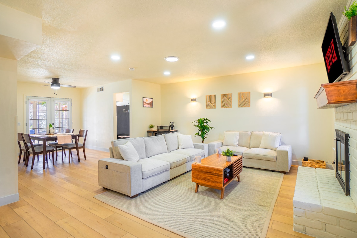 Linda casa principal, reformada e elegante. Compartilha parede exterior com suíte menor. Grande área de estar com dois quartos e dois banheiros. Cada cama é tamanho queen com colchões novos. Bairro tranquilo e a uma curta distância a pé de entretenimento, restaurantes e pubs. A 5 minutos da UTEP e do Centro Don Haskins, a 7 minutos do centro da cidade, a uma curta distância a pé das trilhas da montanha Franklin e do Parque Mission Hills.