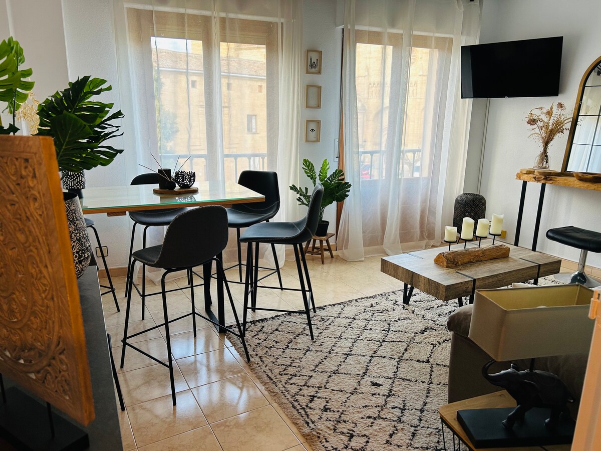 Apartamento familiar mobilado e equipado para 4 pessoas a 10 minutos a pé do centro murado. Estacionamento gratuito na mesma rua. Tem 2 quartos e 3 camas. Cozinha e casa de banho completas. Sala de estar com 2 sofás, televisão e uma varanda. Tem lençóis e toalhas limpas A poucos metros de uma piscina aquecida e pavilhão desportivo onde pode praticar desporto. Supermercados nas proximidades. Acesso rápido e incorporação à aldeia a partir da Autovía.