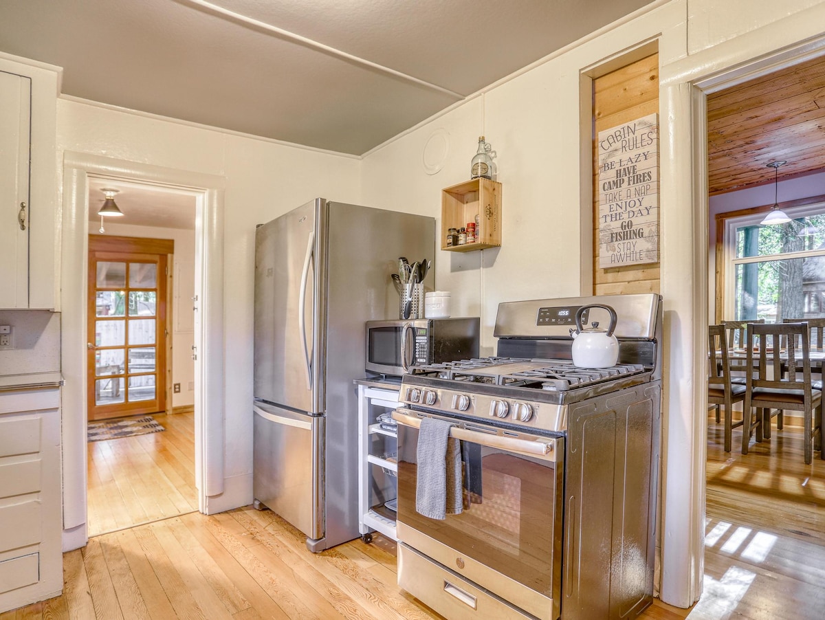 Esta casa de campo de 850 pés quadrados tem um século de idade, mas foi completamente renovada há 12 anos com móveis apropriados para a época, dando-lhe uma sensação de época (e segurança). Guloseimas de café da manhã, arte, livros e um fogão a lenha tornam-no acolhedor. Situa-se em meio acre, então muito espaço para crianças. Fica no sudoeste de Portland, a poucos minutos do centro da cidade. É tranquilo, ótimo para trabalhar ou passar férias. Uma lareira ao ar livre e jardins tornam-na única. Há até uma tirolesa para crianças. Reuniões de família também são permitidas. (Observação: há uma taxa de US$ 60 por cão.)