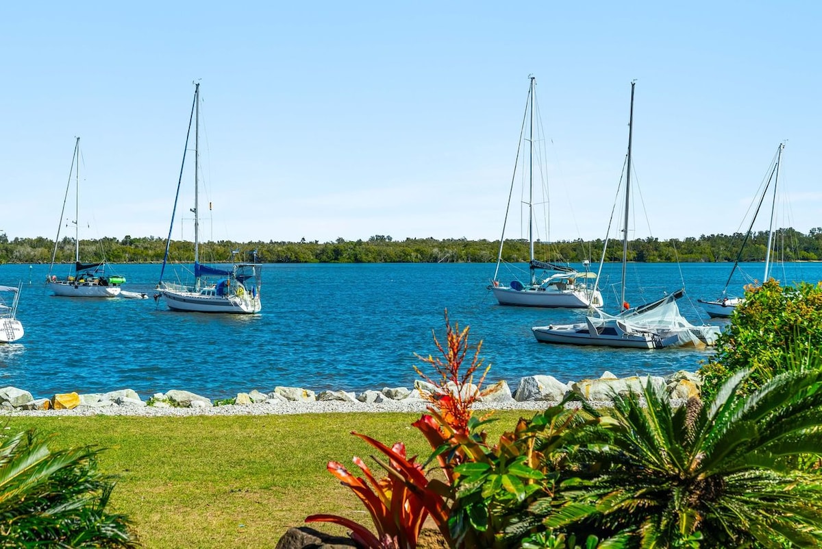 PACIFIC BAY RESORT - Studio Unit is privately owned and is a 1 minute to the beach. Owner Christine maintains the apartment herself, ensuring that you have a pleasant and clean place to stay with lagoon views. This fully air conditioned apartment has a ceiling fan . Complimentary WiFi, Free Parking, Mini Kitchen with Tea/Coffee making facilities small bar fridge and a microwave oven. Guests enjoy 2 Outdoor Swimming Pools, Tennis Courts, Onsite Restaurant and Golf course