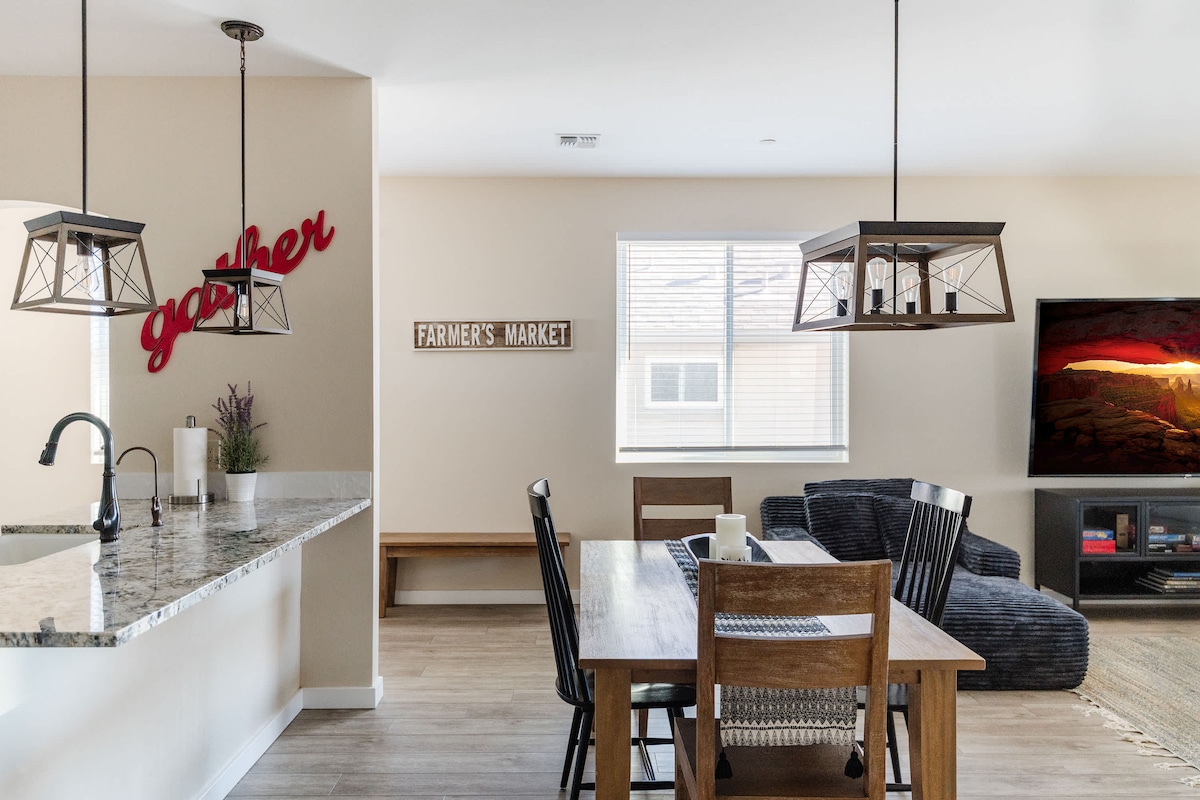 Divirta-se com toda a família nesta elegante casa de construção nova a uma curta distância a pé da Cidade Velha de Cottonwood. Casa moderna de 3 quartos, 2 banheiros com escritório. Perfeito para viagens em família, viagens de casais ou fins de semana de meninas na região vinícola! Esta casa está equipada com comodidades, incluindo cozinha completa, mesa de trabalho ajustável totalmente automática em pé/sentado, mesa de pingue-pongue, mesa de hóquei de ar, quadro de dardos e uma mesa de fogo para desfrutar de uma taça de vinho à noite no pátio traseiro! Venha relaxar em Kindra!