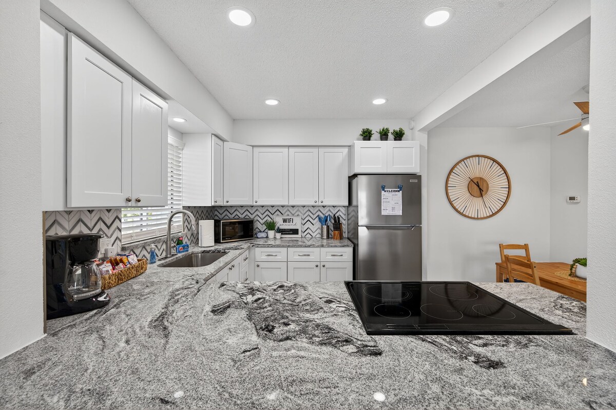 🌴 😎 Deslumbrante retiro estilo Key West com: - Cama queen size de espuma de memória - Varanda coberta para relaxar - Lençóis de hotel, toalhas e muitos confortos para as criaturas 🏄♂️ Desfrute da decoração e dos detalhes da praia nesta espaçosa propriedade de duas camas e dois banheiros. Localizado a menos de três milhas da areia branca e açucarada de Clearwater Beach 😎 (classificada como a praia nº 1 nos EUA pelo Trip Advisor). Relaxe na piscina de estilo resort superdimensionada e no clube. Conveniente a uma curta distância a pé de restaurantes e mercearias nas proximidades.