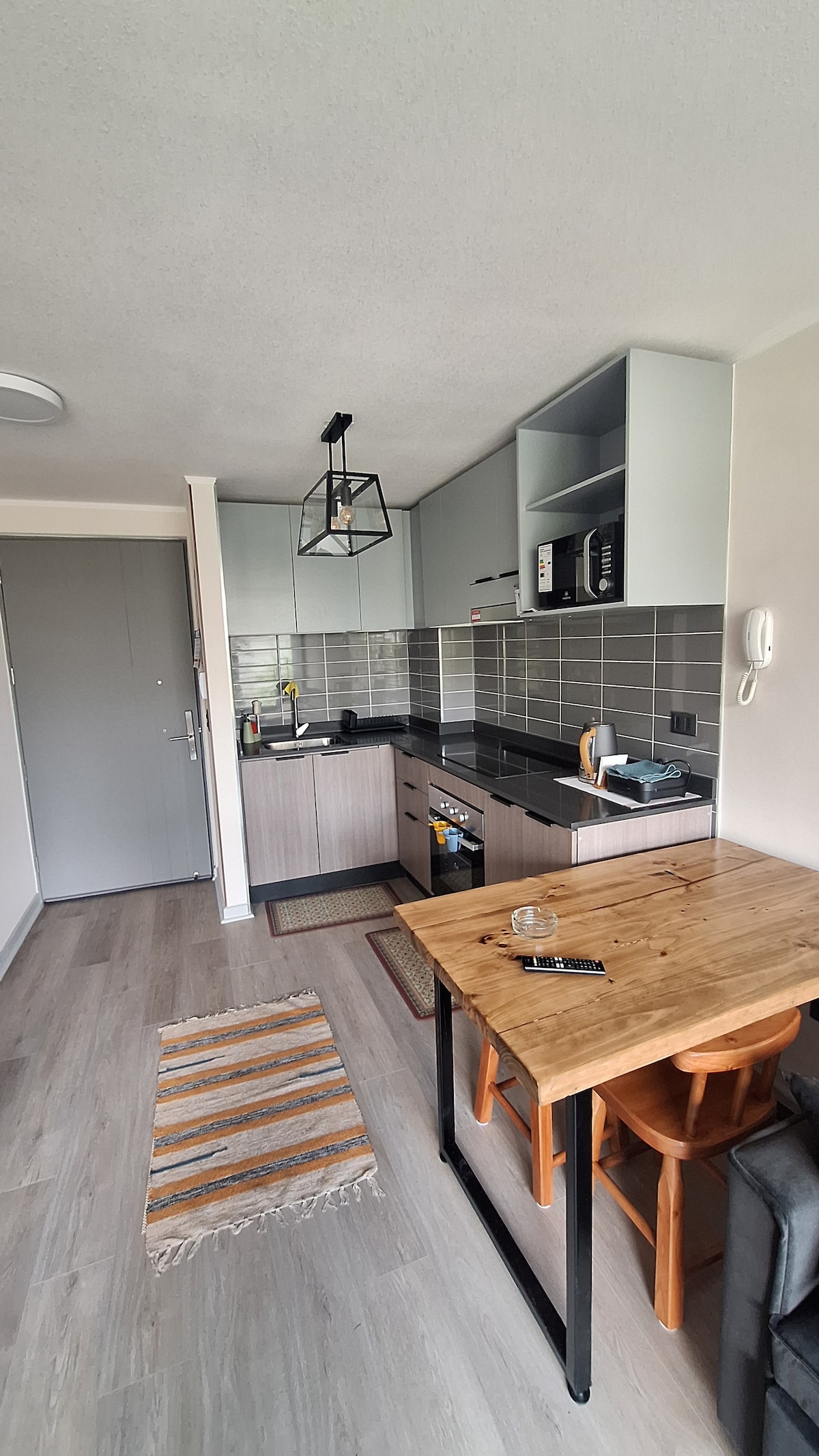 Desfrute de uma estadia confortável e sem complicações num apartamento moderno, luminoso e totalmente equipado num edifício seguro. Ideal para quem vem a concertos, casais, viajantes de curta e média duração ou para teletrabalho. Localizado na Av. España, a poucos passos da Movistar Arena, Parque O'Higgins, Fantasilandia, Barrio Universitario e Club Hípico. Com excelente ligação a toda a cidade de Santiago graças à sua proximidade com o Metro Toesca (L2), o Metro República (L1) e os transportes públicos.