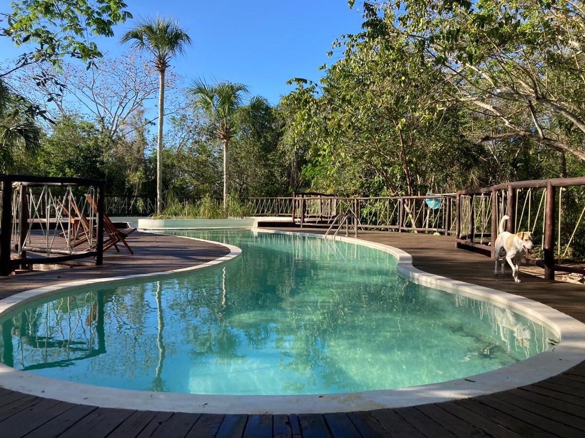 Casa na árvore com cobertura na selva a 2 minutos a pé dos cenotes