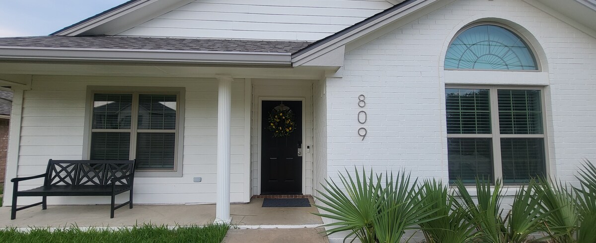 Conceito aberto, casa moderna com ambiente acolhedor e confortável. Projetado para viajantes executivos e de negócios, casais de férias, fins de semana, fanáticos por esportes Aggie e chefs. Bairro muito tranquilo e seguro em frente à entrada do empreendimento Traditions, fora da Villa Maria e a menos de 2 km do campus da TAMU e do campo de Kyle e a poucos minutos do campus de Rellis. Nós possuímos e gerenciamos esta propriedade e estamos disponíveis 24 horas por dia, 7 dias por semana, via celular ou mensagens.