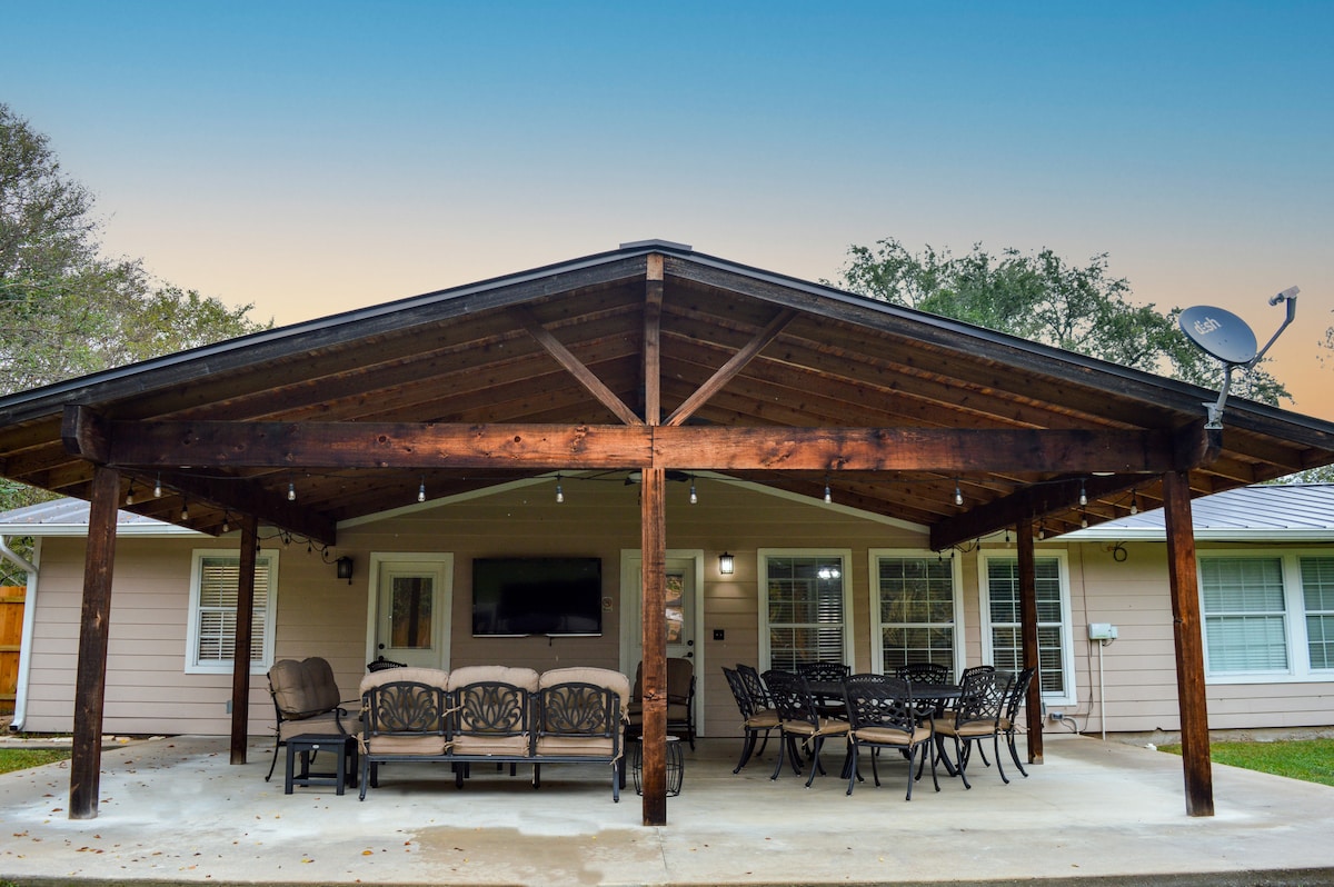 Olá! Bem-vindo à Cabana Aconchegante de Aggieland. Esta atmosfera calorosa é um ótimo lugar para relaxar. A apenas quinze a vinte minutos de Kyle Field, e sete milhas da Vinícola Messina Hof, você tem o melhor dos dois mundos. Uma entrada privativa com uma garagem lhe dará liberdade para ir e vir. Há também um lago na propriedade. Você vai se sentir em casa. Puxando um trailer? Há muito espaço para estacionamento e com uma entrada de portão codificada, não se preocupe com a segurança.