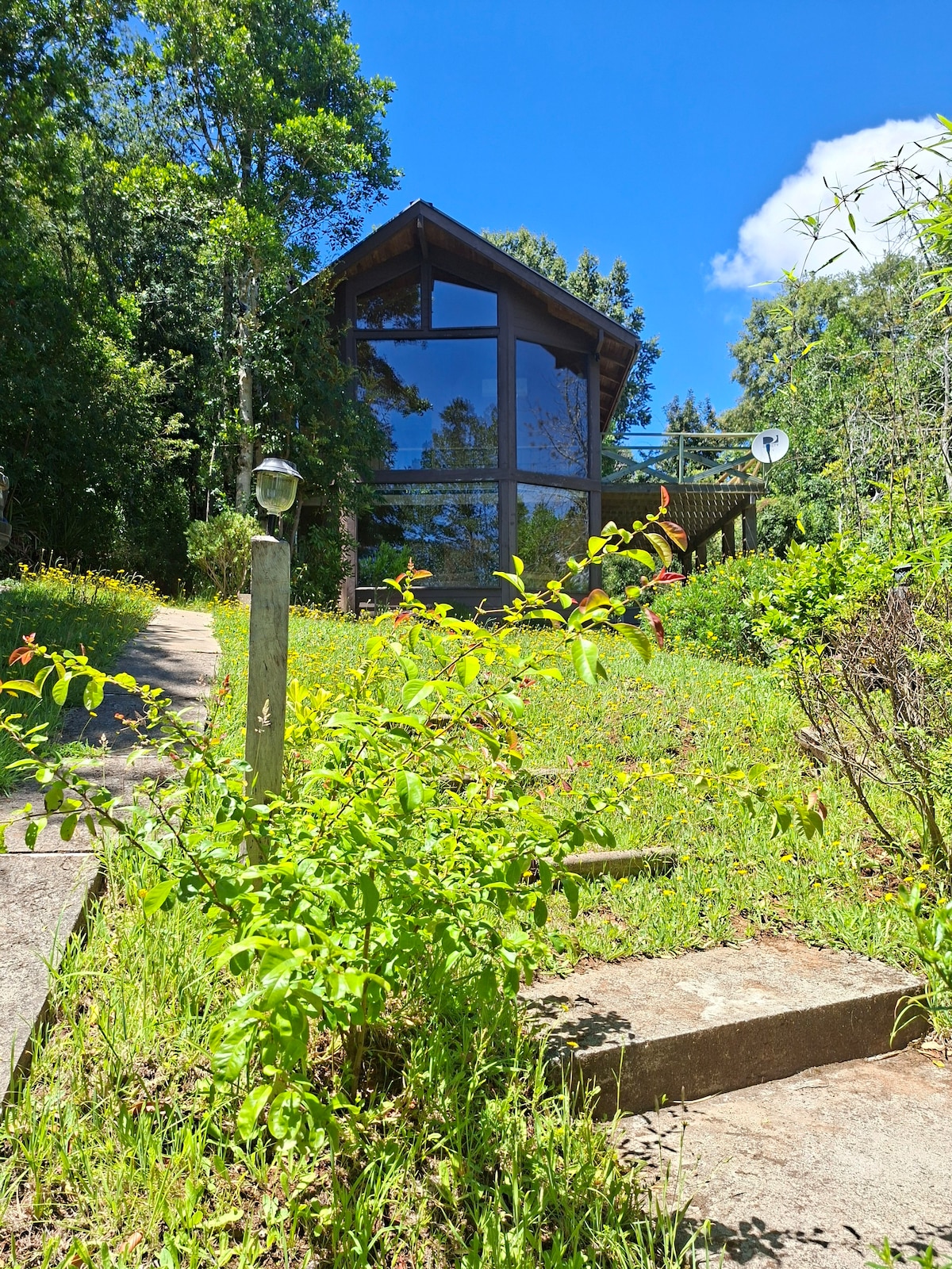 A casa na floresta com vista para o rio.