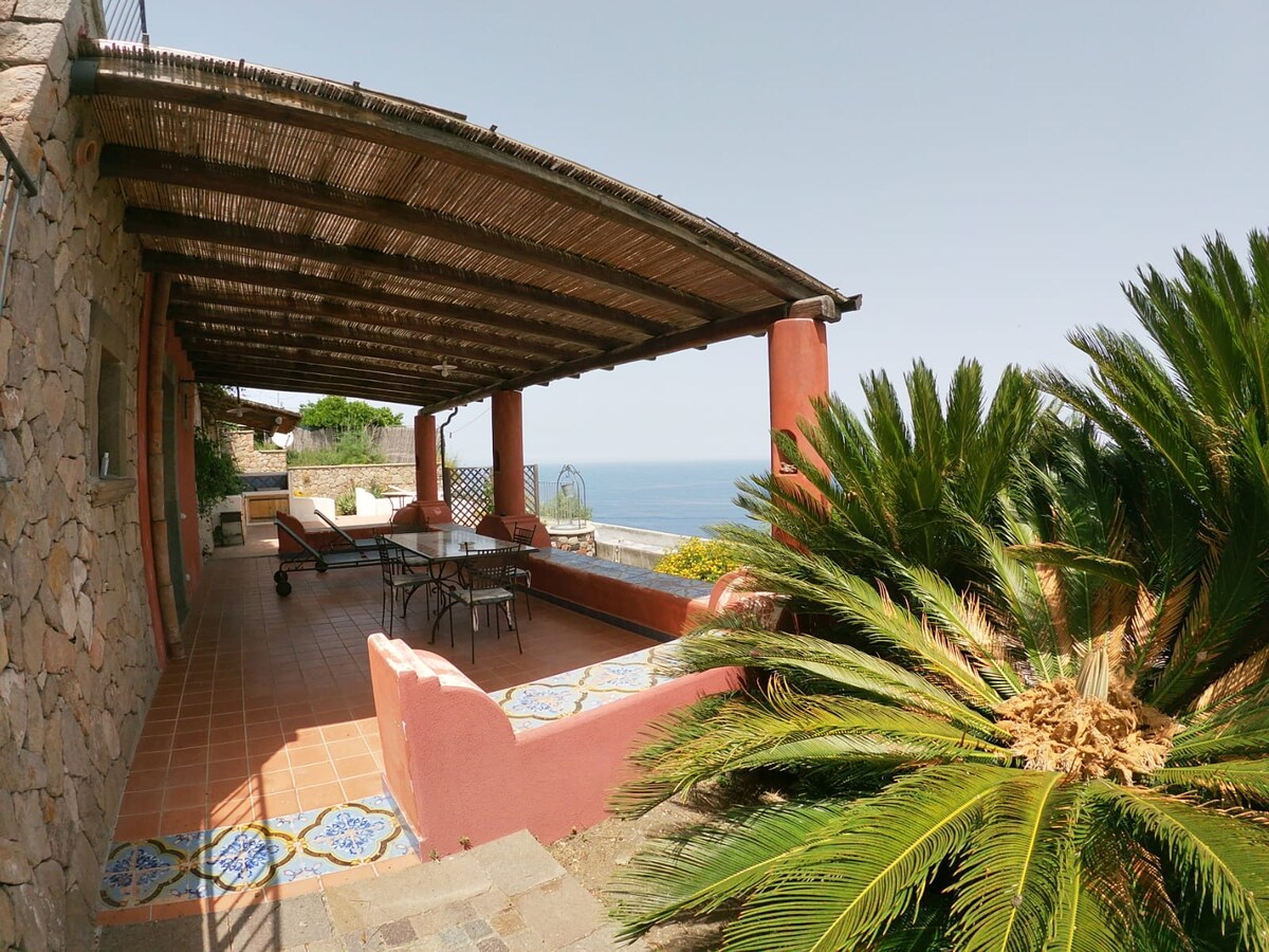 O apartamento faz parte da casa onde vive a única proprietária e é composto por um grande quarto com uma cama de casal divisível, ar-condicionado, um closet, um banheiro completo com chuveiro, uma cozinha equipada com tudo o que você precisa, sofá e televisão. Além disso, um grande terraço com vista para o mar, com uma parte coberta para refeições e relaxamento e uma vista maravilhosa sobre Panarea e Stromboli. Uma escada privada leva à bela baía abaixo, com um mar maravilhoso.