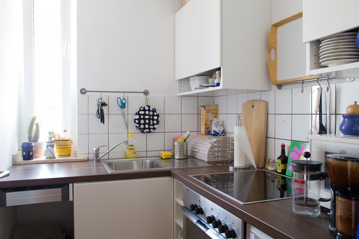 Central, silencioso, muita luz! Feio por fora, agradável e aconchegante por dentro! 😄 Nós mesmos moramos aqui, ao lado. Piano de cauda, camas Tempur (1,80), elevador, varanda grande com sol da manhã. Distância a pé: centro da cidade, Reno, museu do chocolate, catedral: 15-20 minutos. Supermercados, restaurantes, etc.: 10-15 minutos. Köln Messe: 3 paradas de metrô, 15 min. Atenção: Preço mais 5% de "imposto cultural", cobrado pela prefeitura de Colônia! Apenas não fumantes, por favor. ❤️