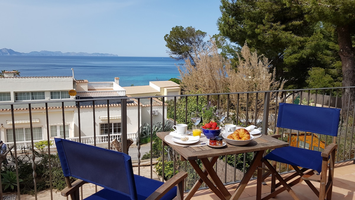 Pequeno apartamento totalmente reformado com vista para o mar. É composto por sala de estar-cozinha com cama ninho para duas pessoas, um banheiro, quarto com cama de 150 cm e terraço, piscina e quadra de tênis comunitária. Ideal para casais, famílias pequenas ou amantes da natureza na região nordeste de Maiorca, em um local único na Baía de Alcudia, "Parque Natural da Península de Llevant", cercado por trilhas de montanha e enseadas tranquilas e pouco frequentadas com águas azul-turquesa a poucos minutos a pé da região.