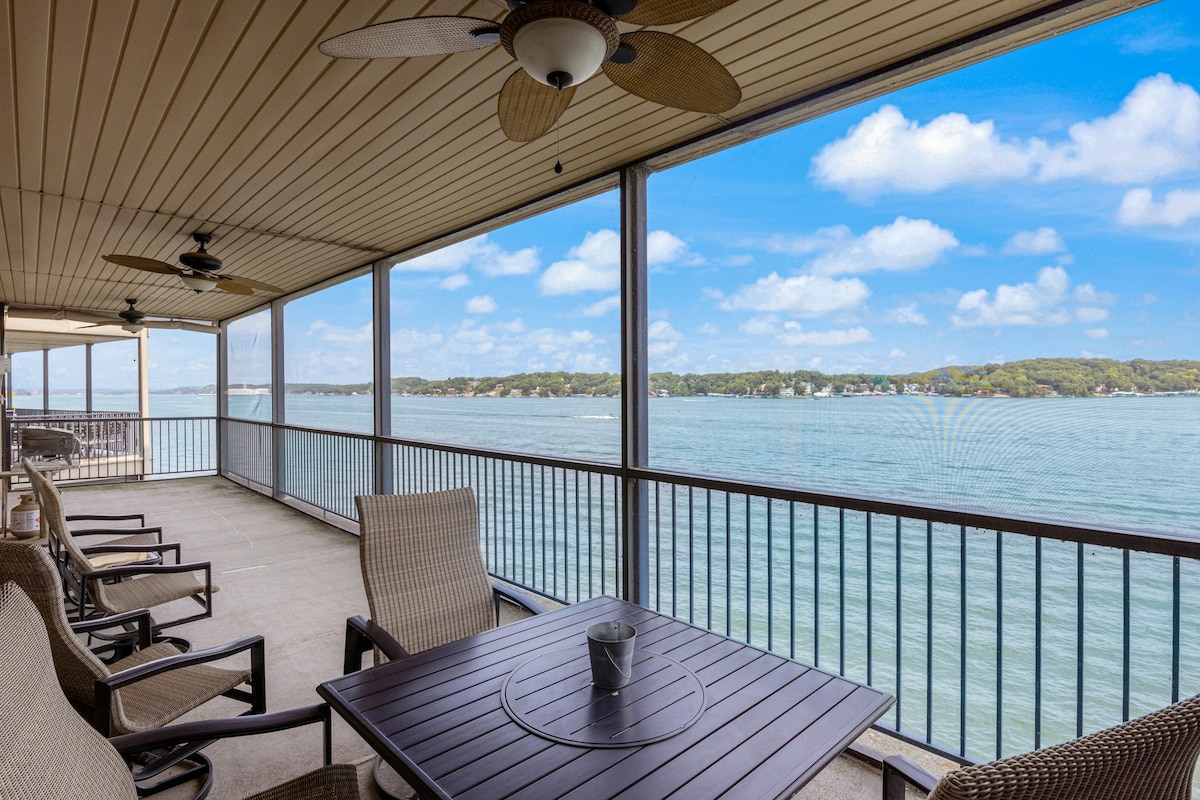 Summer getaway! Truly a guest favorite at the lake - If you're looking for the BEST VIEW of the main channel, then welcome to Tara Condos! 1 bedroom, 1.5 bath, top floor, condo with a loft and HUGE private balcony on the water where you can nestle into hammocks and immerse yourself in views of the stars and summer sunsets. Located on the desirable Horseshoe Bend—close to restaurants, bars, golf courses, & more! Included: Salt water pool with lake views (mid May-mid Sept) & Boat+PWC slip May-Sept