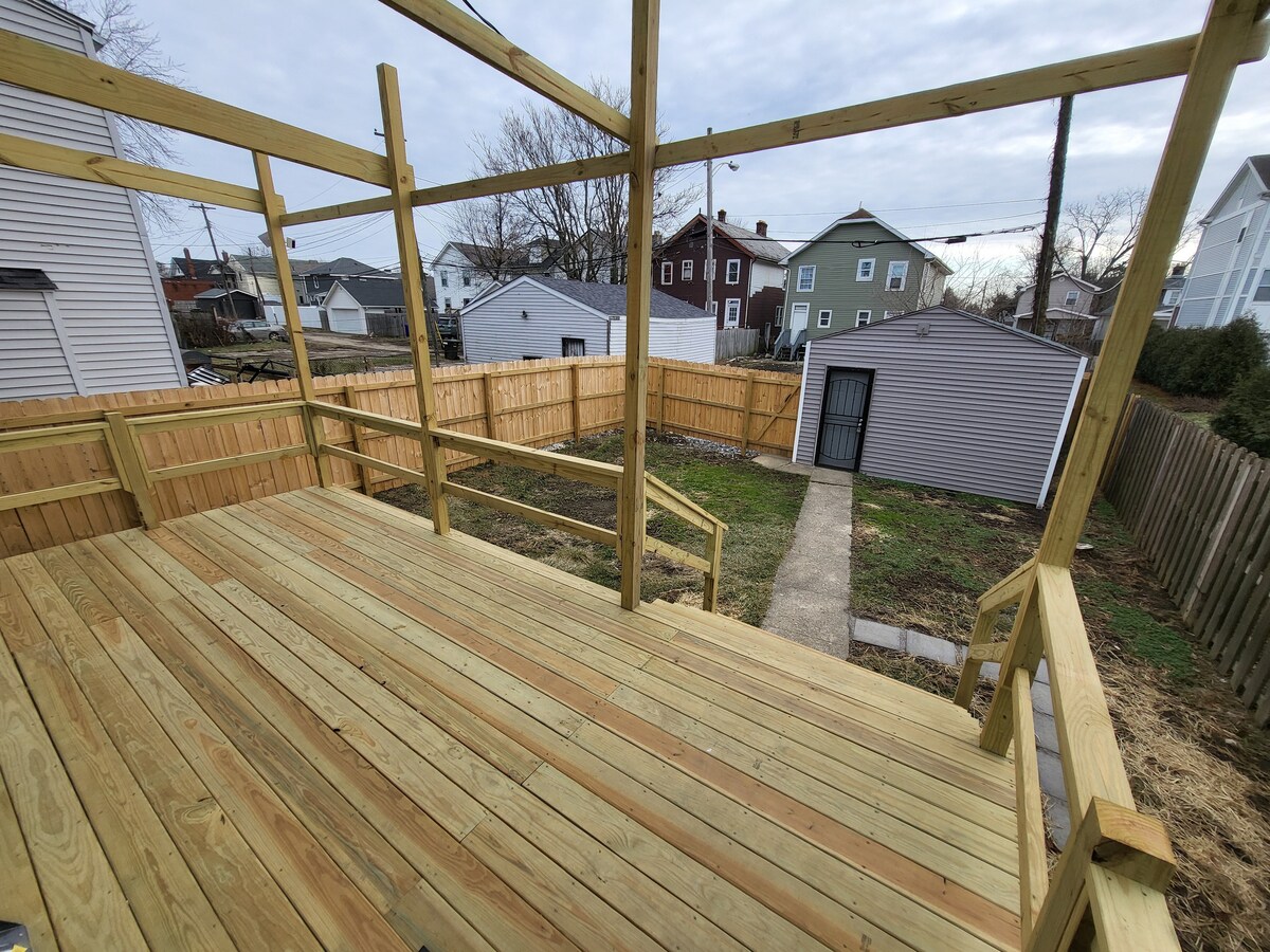 1º andar 1 QT, 1 banheiro Casa de hóspedes PRIVATIVA separada (NÃO compartilhada) completamente mobiliada, com cozinha e quarto king-size luxuoso. Estacionamento na rua cercado. Os anfitriões moram ao lado e trabalham em casa. No histórico Olde Towne East. A área é urbana, então espere ver e ouvir as vistas e os sons da vida na cidade! Cerca de 1 mi para o centro da cidade e o Centro de Convenções, 1 mi para o Franklin Park Conservatory, 5 mi para a Universidade Estadual de Ohio ou o Aeroporto Internacional John Glenn (cerca de 11 minutos de carro).