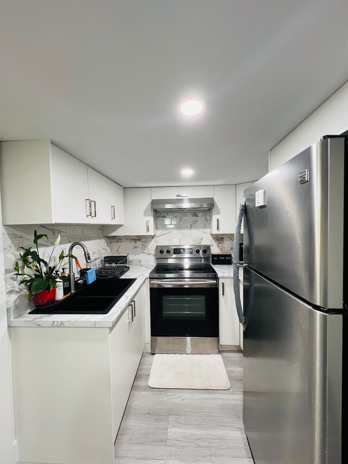 Suite pequena e acolhedora com 2 quartos em Colwood! Este espaço luminoso na cave tem uma entrada privada a partir do quintal, cozinha completa, lavandaria na suite e estacionamento gratuito. Descanse em camas king e queen premium e desfrute de uma sala de estar com TV com streaming. Saia para um quintal tranquilo com um toldo coberto, churrasqueira e área de pátio com fogueira. Caminhe até à lagoa panorâmica, ao Castelo de Hatley e à Universidade Royal Roads. Perfeito para famílias, casais ou trabalhadores remotos que procuram conforto, natureza e conveniência.