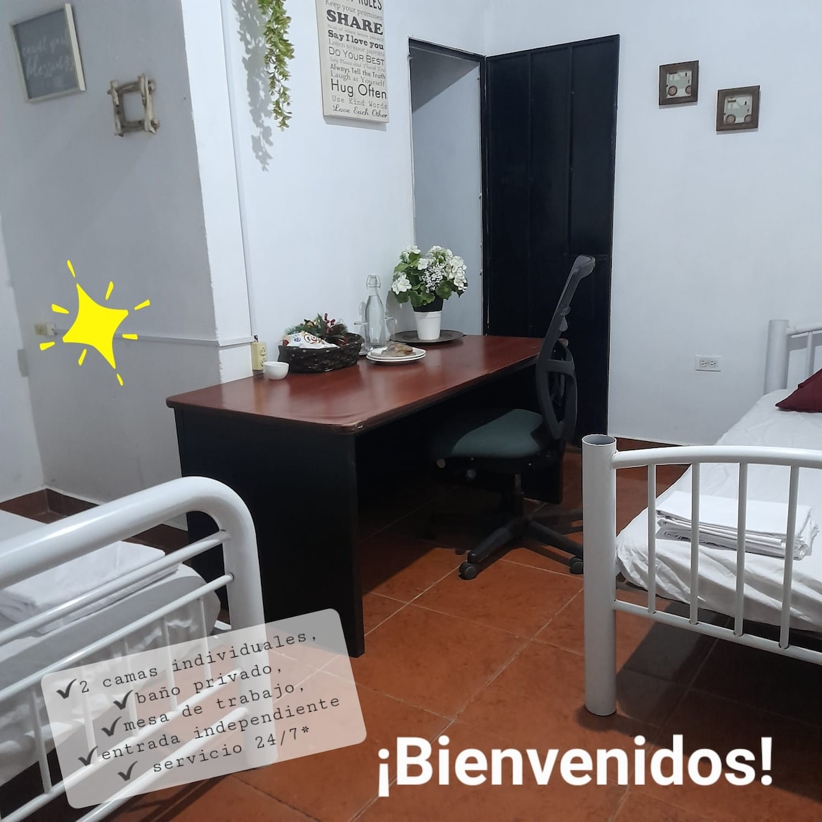 Justo lo que necesitas para descansar hoy, sin gastar mucho. En un lugar privado y tranquilo, en una bonita y buena colonia. Tienes acceso, a pocos pasos, a lugares de comida y abastecimiento como super y restaurantes. También podemos prepararte comida equilibrada y nutritiva o encargar por ti rica comida típica de nuestra zona. Contamos también con transportación segura de y al aeropuerto. ¡Bienvenidos a cualquier hora! -con coordinación previa-.