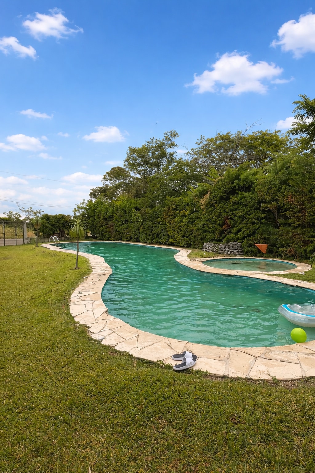 Esta elegante casa a 5 minutos de COMITAN DE DOMINGUEZ é ideal para viagens em grupo ou em casal. Cabana muito acolhedora e confortável neste momento. Área de campismo. Área de torrefação. Área de fogueira. Atividades nas instalações gratuitas (golfe, pesca, tiro ao alvo, interação com animais, etc.) O espaço está numa excelente localização para diferentes caminhadas, como a chiffon, as cascatas de Tzimol, o cenote Chucumaltik, os lagos de Montebello, as nuvens, etc.