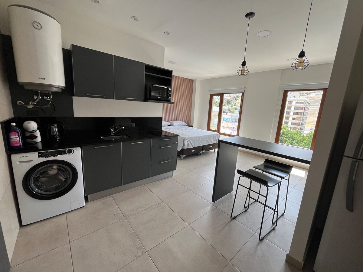 Desfrute deste Departamento recentemente renovado, com a vista mais próxima do mar da cidade, é um alojamento tranquilo e central ideal para casais ou com uma criança pequena, ambiente super confortável para Home Office