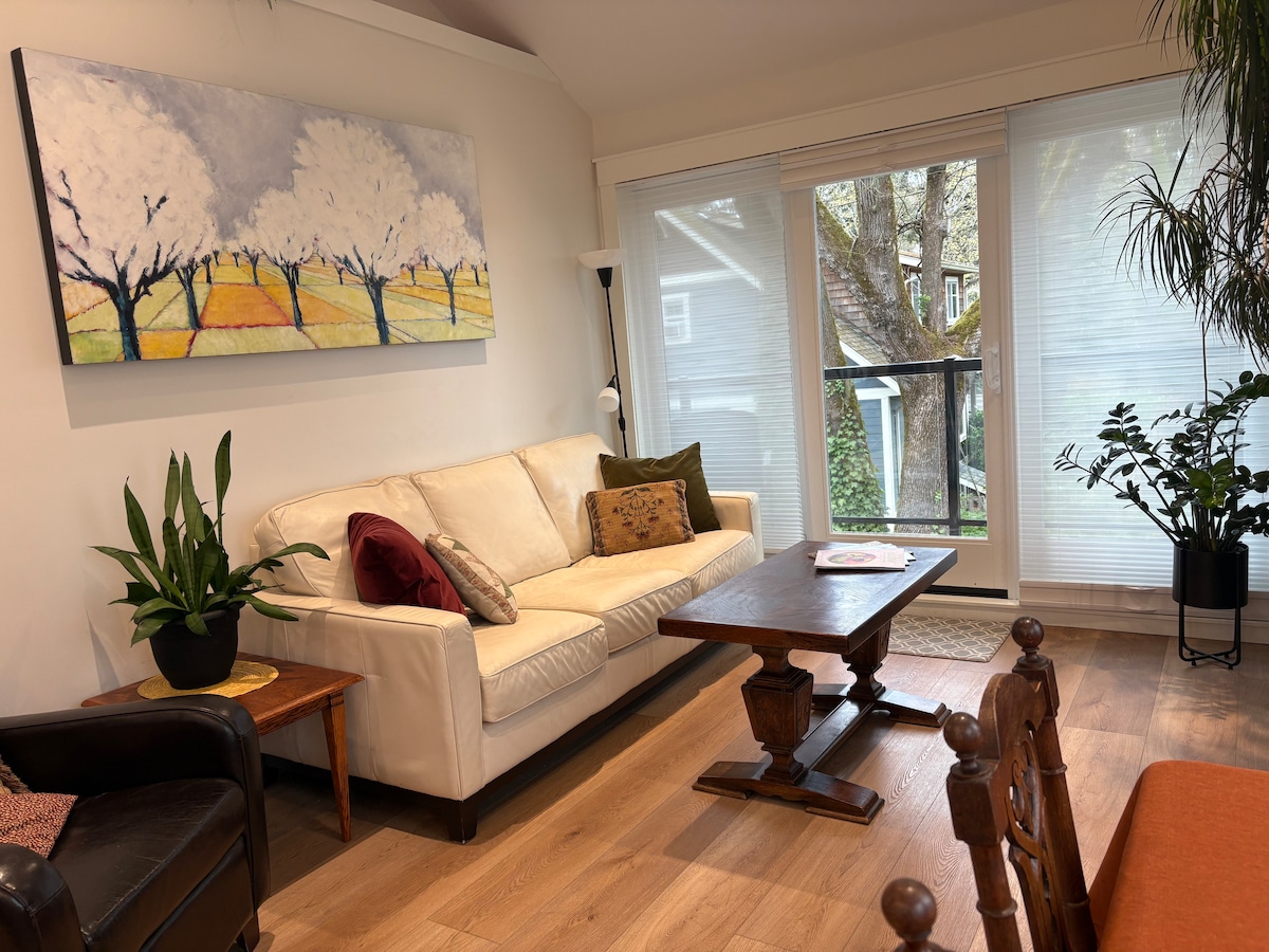 *Suíte recém-renovada e tranquila num edifício separado da nossa casa. 5 minutos de carro do aeroporto de Comox e do ferry Powell River, 25-30 minutos de carro do Mount Washington Resort* Situada num belo e privado cenário florestal, mas a apenas 7 minutos do centro de Comox, a nossa suite de carruagem oferece uma escapadela tranquila e confortável nas árvores. Estúdio de ioga na propriedade com aulas semanais! *Por favor, informe-nos quando reservar se vai trazer animais de estimação ou mais do que 1 veículo*
