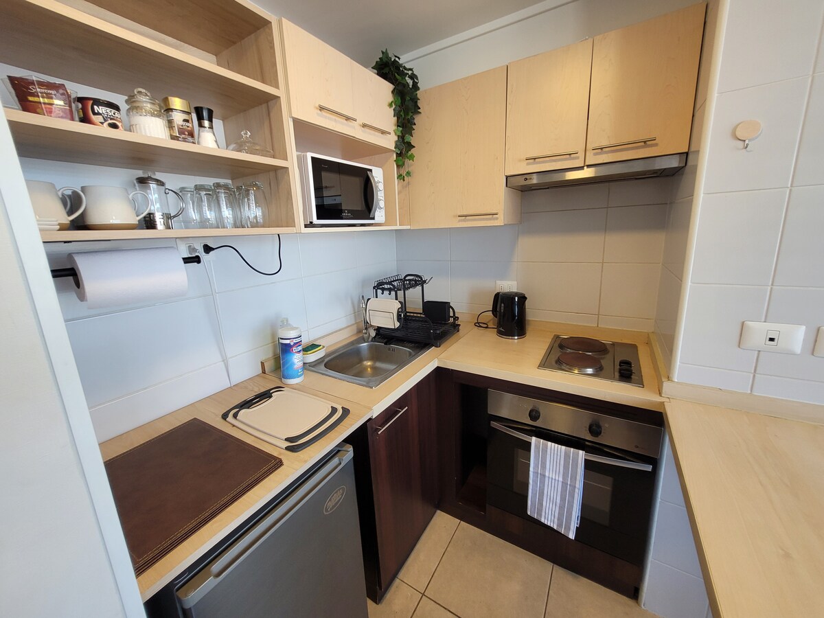 Home Studio renovado. Premiado pelo Airbnb! A poucos passos de tudo e perto do centro de Concepción. Mobiliado com estilo, equipado para que 1 ou 2 pessoas se sintam confortáveis e como "em casa". Cama de casal, TV a cabo e Wi-Fi, banheiro e cozinha equipada. Acesso à lavanderia. Somos falantes de inglês! Ficaremos felizes em ajudá-lo com a sua estadia em nossa cidade!