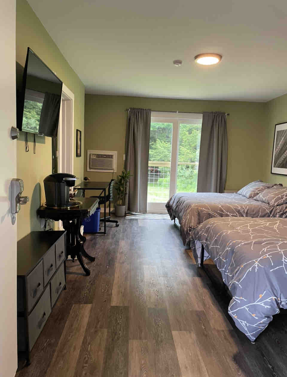 Quarto de hotel elegantemente renovado no Lodge at Lincoln Station resort. Acomoda 2 pessoas. Com cama king, micro-ondas e cafeteira. Situado na base do Pico Sul da Montanha Loon, nas lindas Montanhas Brancas de New Hampshire. Desfrute da natureza, caminhadas e belas paisagens montanhosas! Ótima área para refeições e atividades ao ar livre. Piscina coberta e jacuzzi estão abertos e localizados em nossas instalações. Ótimos restaurantes a uma curta distância a pé. Serviço de ônibus gratuito para o portão Loon Lift. Rio Pemigewasset na parte de trás.