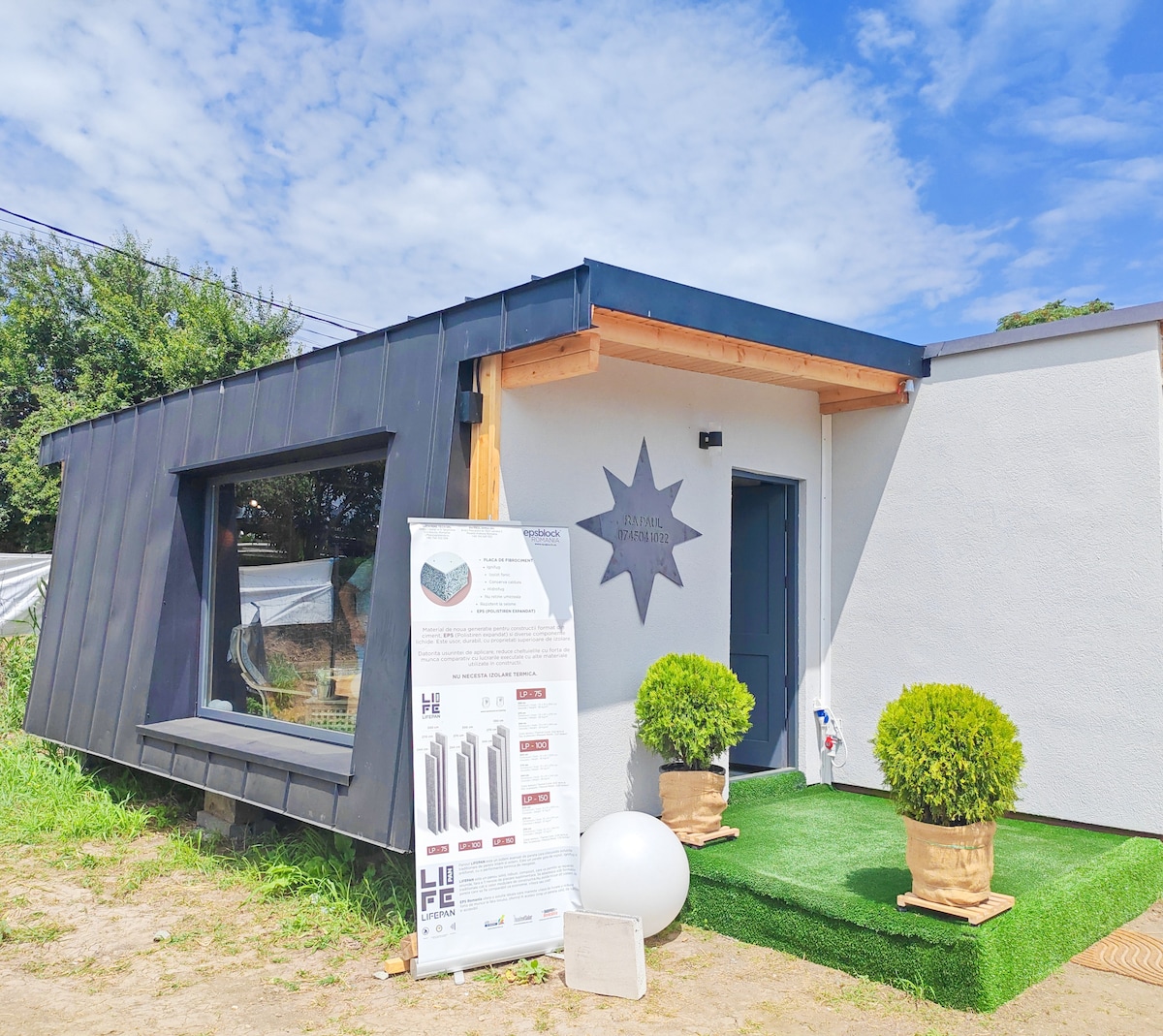 A casa de campo móvel pode acomodar entre 2 e 4 pessoas (o número de pessoas é selecionado a partir da aplicação ) com um quarto com cama king size e casa de banho privativa, cozinha equipada, sala de estar com sofá-cama muito confortável para 2 pessoas, com casa de banho privativa. Em frente à casa de campo está organizado um terraço. As 3 microcasas de propriedade estão localizadas no mesmo quintal.