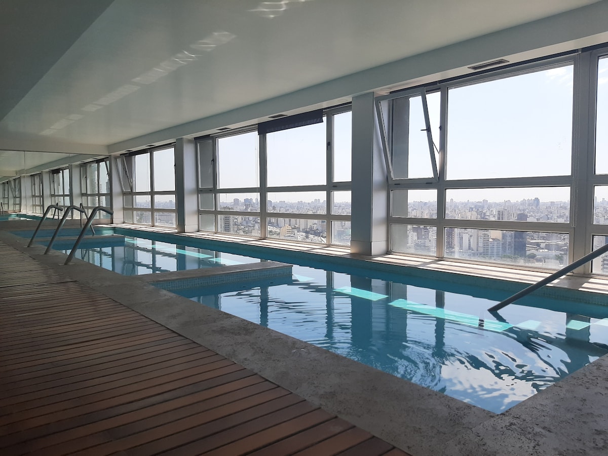 Elegante apartamento em Madero Urbano em frente a Puerto Madero, a poucos passos dos bairros de San Telmo, La Boca, microcentro, Plaza de Mayo, outros locais turísticos e vários meios de transporte. O edifício dispõe de serviços premium, como piscina aquecida, sauna, jacuzzi, academia, microcinema, sala de reuniões, segurança 24 horas. O apartamento está totalmente equipado. Wi-Fi de alta velocidade, em um 22º andar com vistas espetaculares. Muito silencioso e luminoso. Excelente localização.