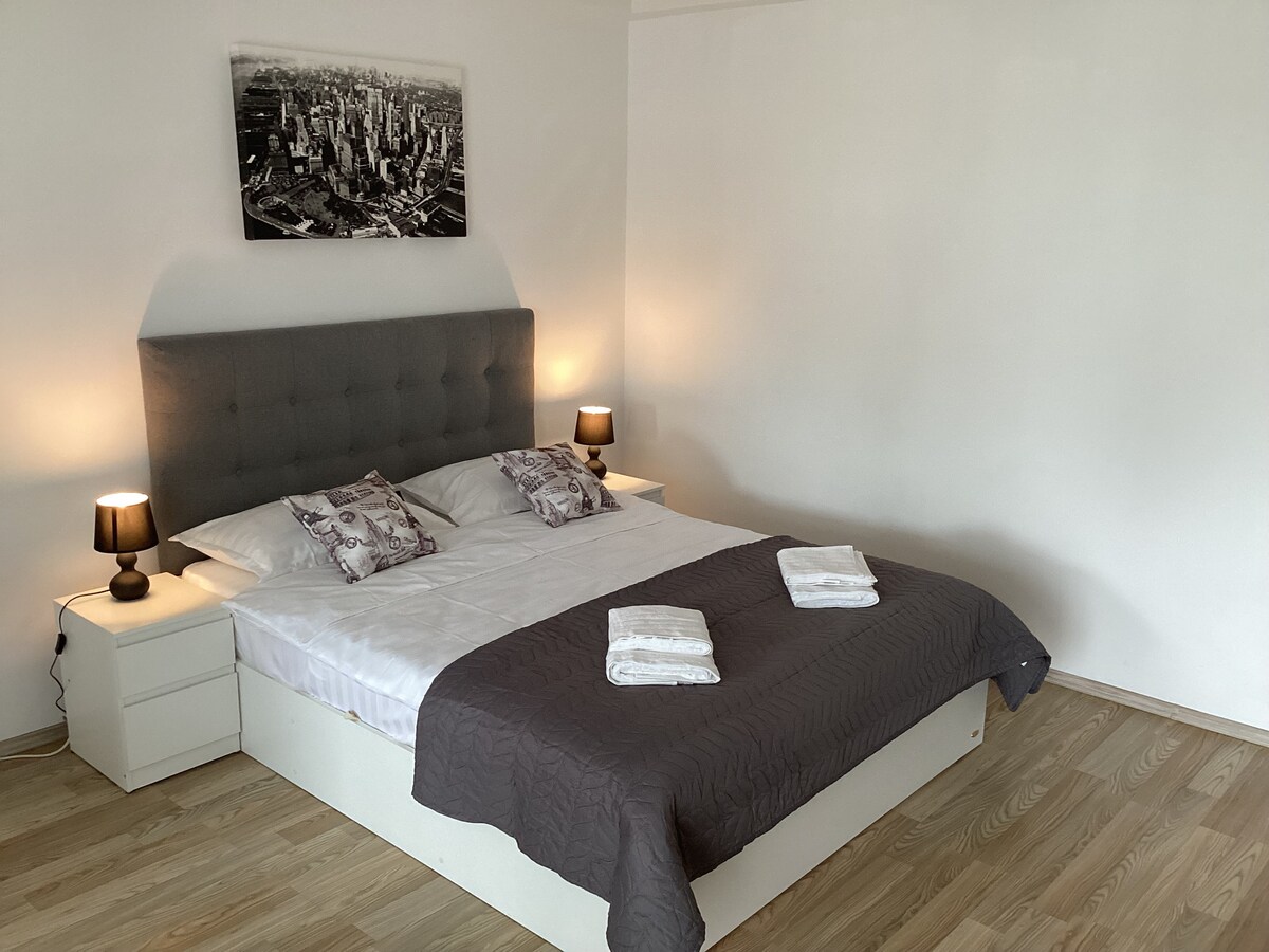 Um maravilhoso apartamento de 2 quartos ao lado do aeroporto (10-15min a pé, ou de táxi 3-5 min, de trem 2min) em um ambiente calmo cercado por árvores, grama verde, área de churrasco, parque infantil e uma piscina disponível no verão. Trem direto para o centro de Bucareste (20 min). No belo apartamento você tem tudo o que precisa para se sentir em casa. A principal atração da área é o maior resort termal europeu Therme, bem como shoppings, o famoso Museu do Carro Tiriac, lagos e florestas.