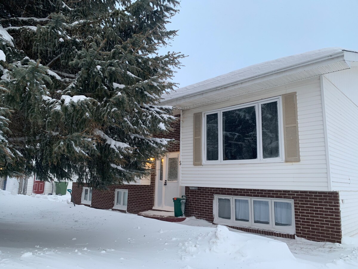 Um apartamento espaçoso, mas acolhedor, num bairro residencial tranquilo. Fica perto de Murphy Square, Marble Mountain, do centro da cidade e da Corner Brook Plaza. Esta unidade é um apartamento privado no piso inferior da minha casa. Há alguma transferência de ruído entre as habitações. Há uma série de escadas para a unidade. A unidade tem uma máquina de lavar e secar roupa. Está disponível estacionamento na entrada da garagem. Há um carregador de veículos elétricos para uso condicional. Descontos semanais e mensais disponíveis.