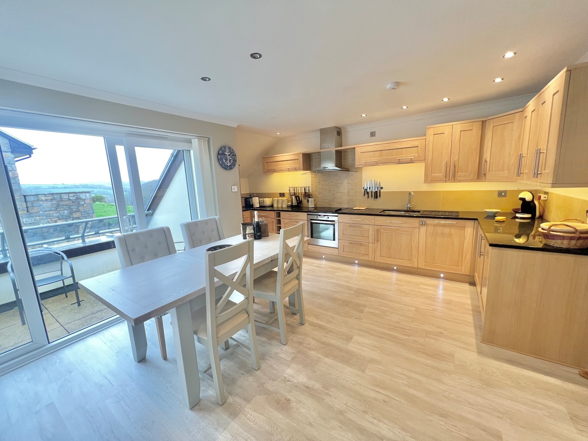 Spacious sea-view apt. w/ hot tub over St Ives Bay