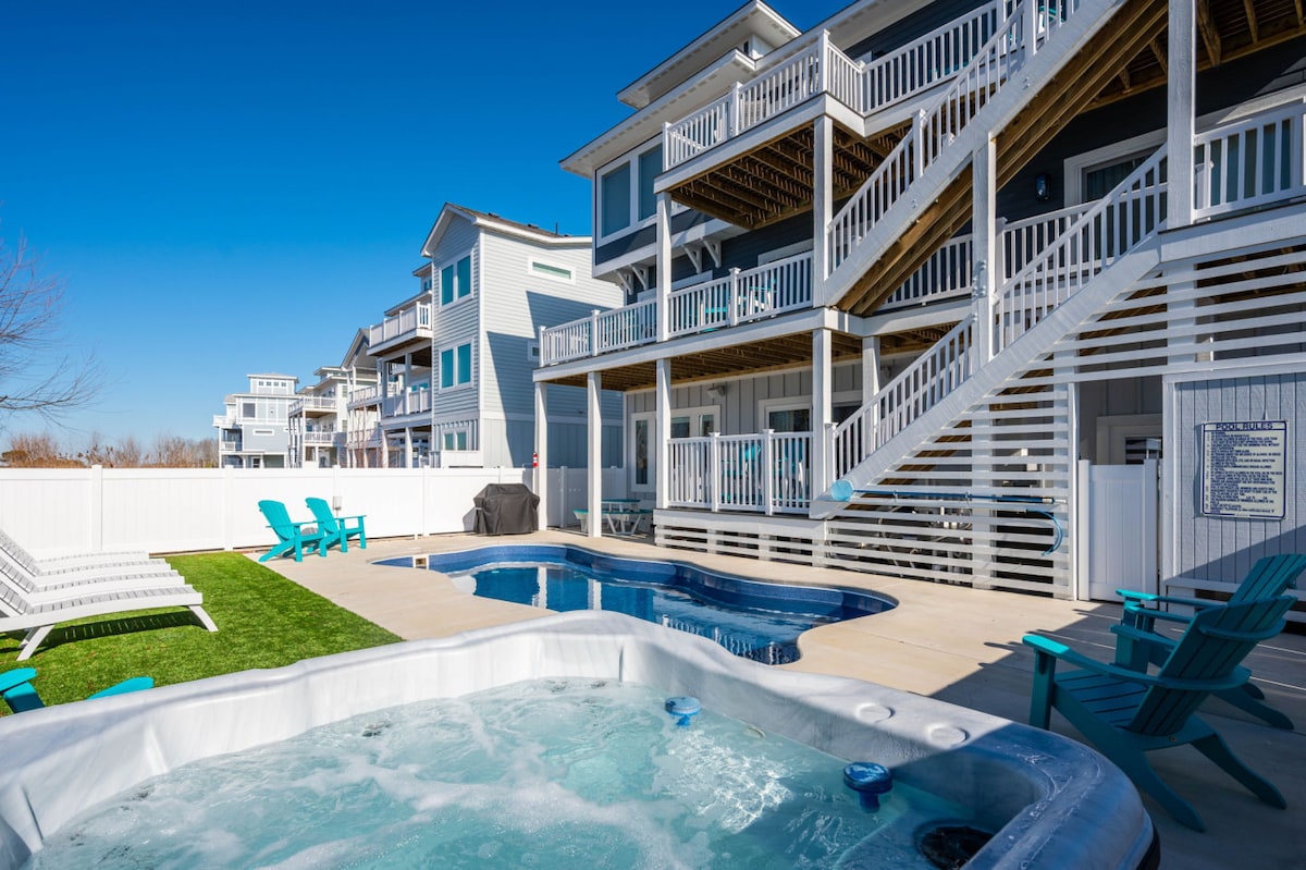 Nossa linda casa de praia fica perto de praias mundialmente famosas e atrações locais icônicas. Com uma localização central para experimentar o melhor que os Outer Banks oferecem. Envie-me uma mensagem para saber mais. Piscina ● privativa e pátio com tela que a família vai adorar (a piscina está aberta de maio a setembro) Campo de● minigolfe ● 4 quartos, (2 são King com banheiros privativos), além de um quarto bônus com mais 2 camas ● Bairro tranquilo e relaxante para relaxar Comodidades de● praia disponíveis ● TVs com Roku players para streaming Conexão Wi-Fi● rápida. Carregador de veículos● elétricos