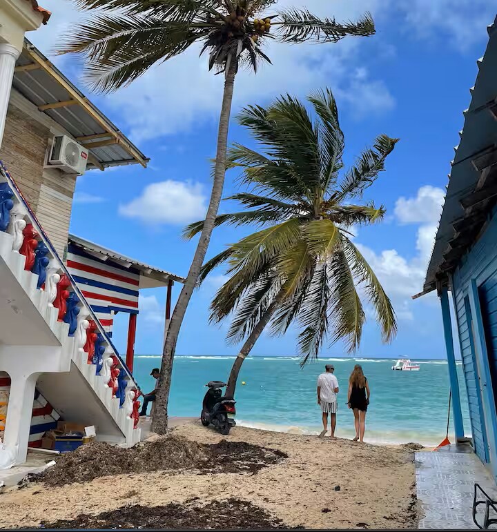 A 30 metros da praia "Los Corales" pequena suíte privada de 3 metros por 3 metros com entrada individual, banheiro, bem equipada, com pequeno pátio natural. Bairro estilo mediterrâneo, tranquilo, cercado por vegetação. Restaurantes, bares, spa dentro do condomínio. Acesso à piscina compartilhada do condomínio. com fogão elétrico de um queimador, micro-ondas e pequena geladeira. Transporte do aeroporto 25 dólares Ilha Saona Los haitises Tirolesa Cocobongo Buggies Etc.