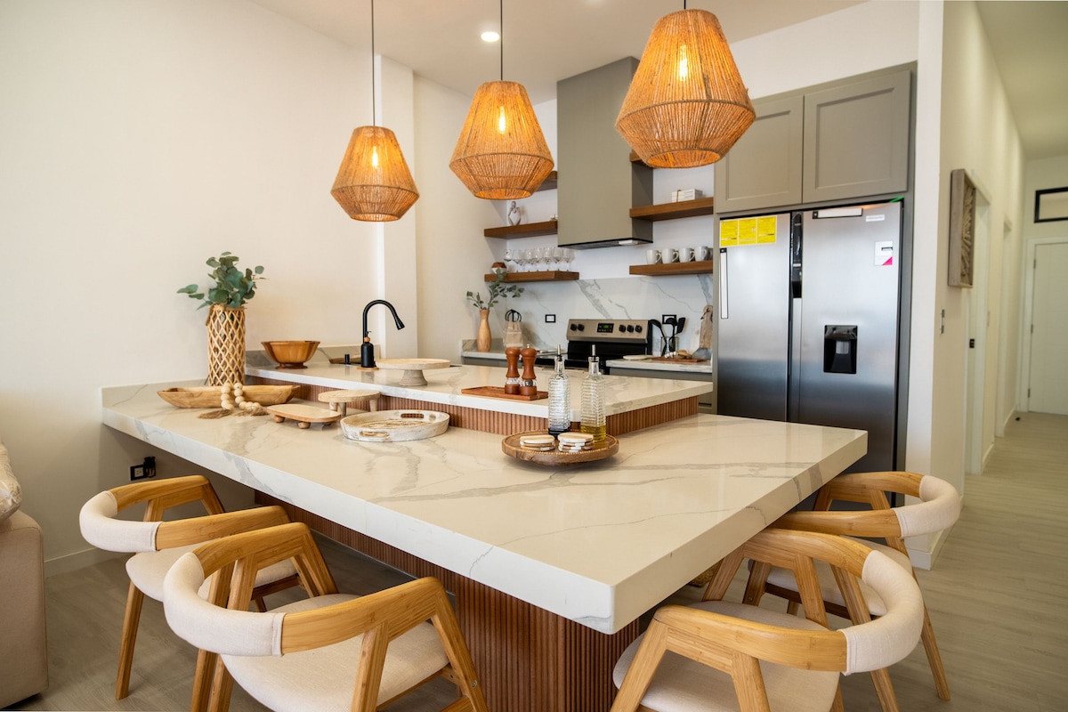 Este lugar único tem seu próprio estilo, com uma decoração impecável, equipado com tudo, para fazer da praia, sua casa, temos um gerador elétrico, máquina de gelo, água purificada, camas e travesseiros que convidam ao descanso, um terraço com uma vista espetacular para o Oceano Atlântico, churrasqueira e jacuzzi, prontos para você desfrutar, área acessível, a poucos metros de restaurantes e supermercados, na área comum tem 2 piscinas e 2 redes para você aproveitar ao máximo a sua estadia
