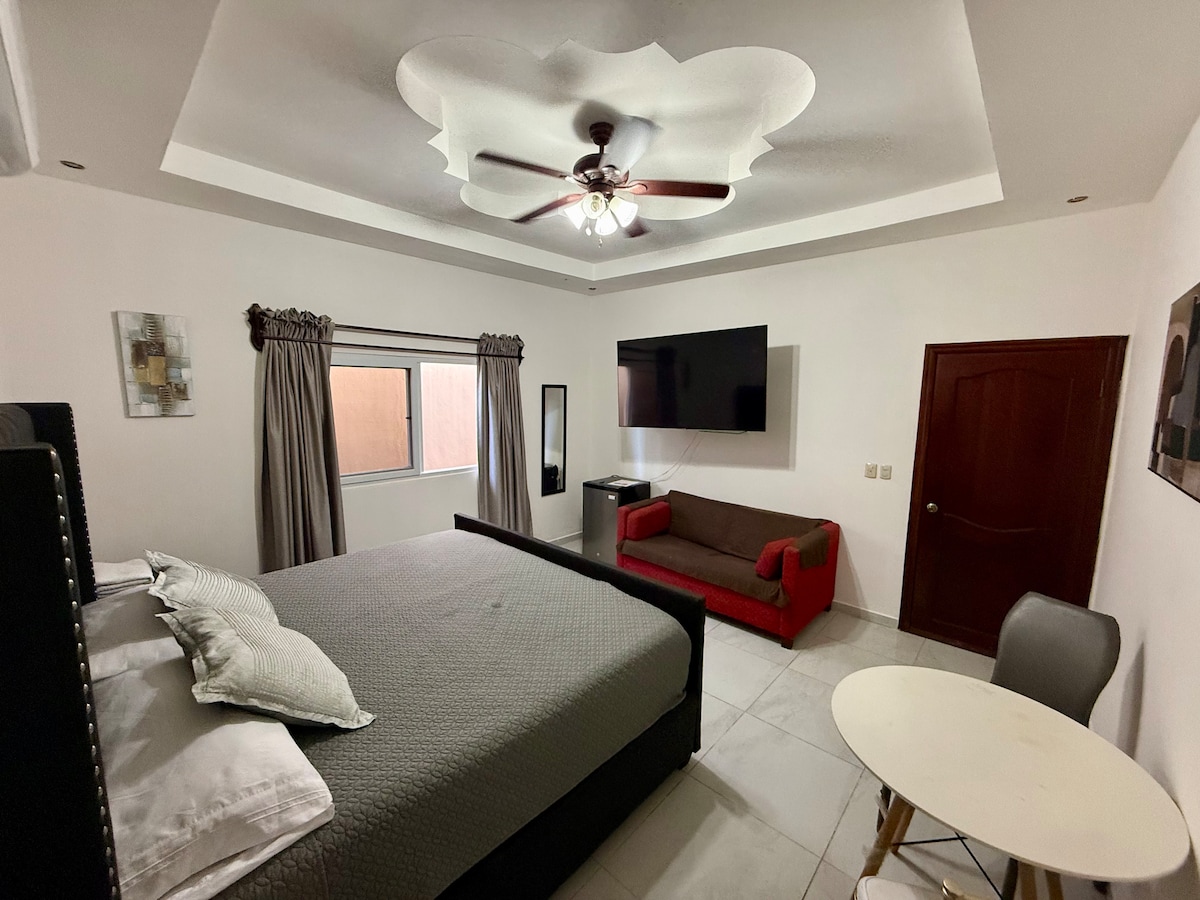 Localizado em Villas del Sol, um Lugar Privado Tranquilo e Seguro. Pode desfrutar dos seguintes serviços. - Ar condicionado - Entrada independente privada - Wi-Fi - Estacionamento seguro. - Área segura em Circuito Fechado Residencial - Casa de banho privada - TV a 5 minutos de todas as saídas de San Pedro Sula, muito central e bem localizada perto de restaurantes, supermercados e áreas comerciais. Temos o nosso próprio restaurante no local e levamo-lo para o seu quarto.