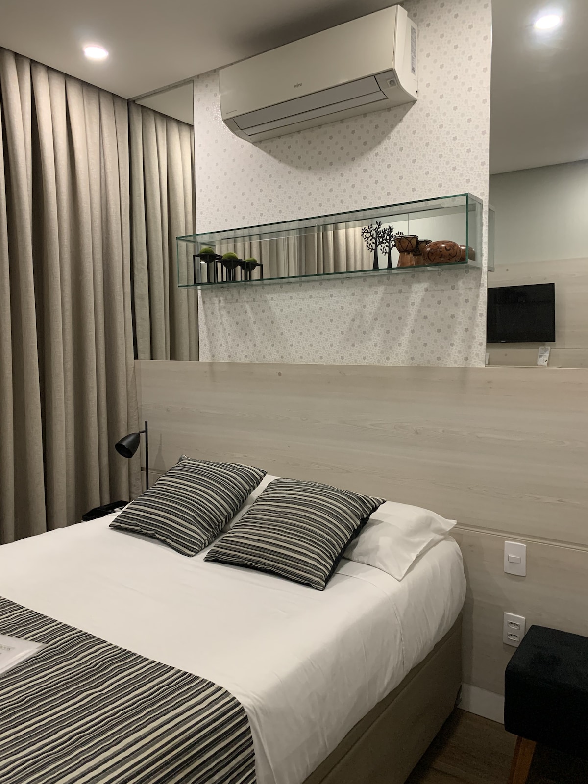 Studio moderno e bem localizado na Granja Viana! Cama de casal padrão, cozinha bem equipada, banheiro e bancada para refeições ou trabalho. Varanda com rede de proteção, ar-condicionado, Wi-Fi 350MB, Smart TV 32” com Netflix, enxoval em algodão e excelente colchão. Condomínio oferece academia, piscina climatizada, lavanderia, área pet, garagem, mini mercado e portaria 24hrs. Localização privilegiada, próximo ao Kartódromo Granja Viana, Templo Zu Lai, CT SPFC, Haras V. Real e Animália Park.