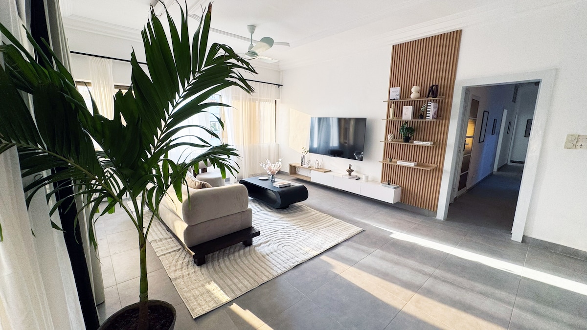 Alojamento de alta qualidade localizado numa zona muito tranquila, tem um estilo resolutamente único devido ao conforto que oferece. Localizado no 1º andar e no último andar, tem uma grande sala de estar muito espaçosa com uma bela varanda mobilada, dois quartos grandes, cada um com casa de banho própria e sanita separada, uma cozinha totalmente equipada, uma sala de relaxamento para uma boa banheira em frente à TV. Fica: 25 min do aeroporto a 5 min da praia. Apartamento totalmente climatizado.