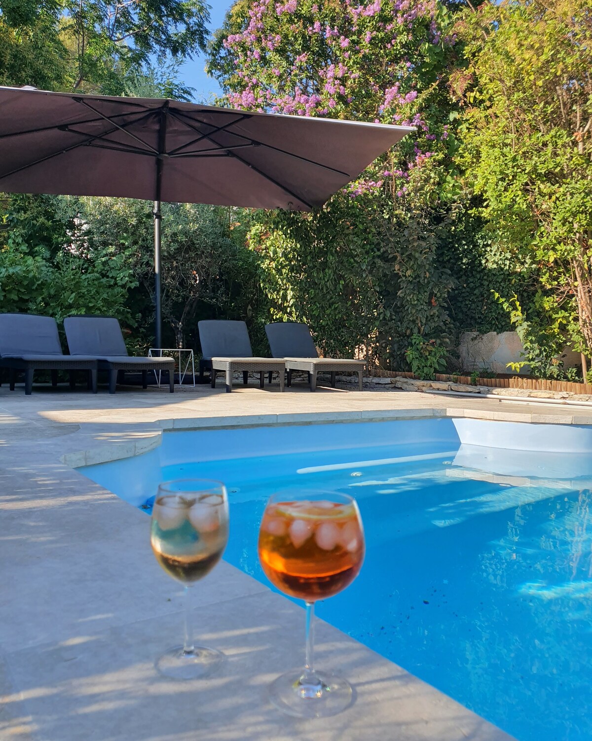 Você vai se encantar com este alojamento cuidadosamente decorado localizado em nossa propriedade e totalmente independente de nossa casa principal, com acesso direto à piscina, jardim e terraço independente. Vocês serão os únicos hóspedes durante a sua estadia. Você será recebido em total conforto, da sua cama queen size você poderá admirar o nascer do sol sobre a piscina e o jardim florido. Entre oliveiras e cerejeiras, você pode escolher seu canto de sombra para a soneca!