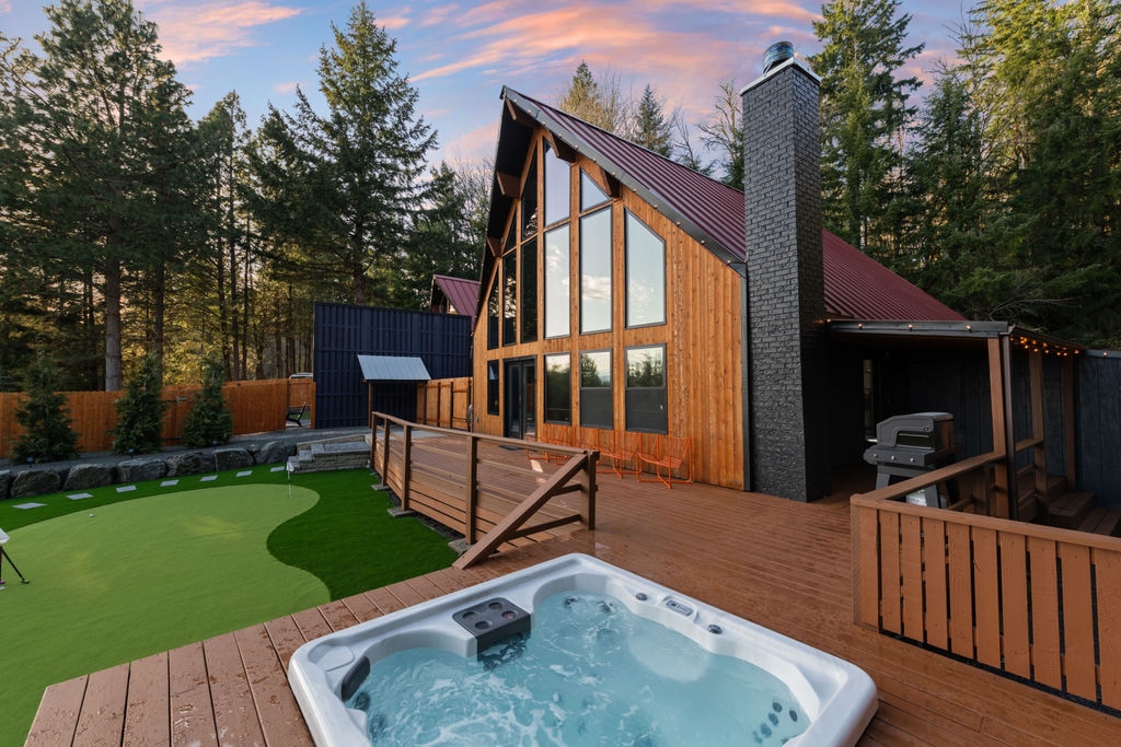 Retiro privado de luxo a 1.800 pés de altitude. Desfrute dos benefícios curativos de uma banheira de hidromassagem com vistas incríveis do Monte Hood, Monte Jefferson e do Rio Columbia. Relaxe em uma sauna infravermelha ou em uma rede em uma varanda coberta enquanto a natureza o cerca. Espaços interiores atenciosos e comodidades para tornar sua estadia o mais confortável possível. Wi-Fi de fibra de 100 MB, carregador de veículos elétricos. Um ótimo acampamento base para viagens fáceis de um dia para o Monte St. Helens, Monte Rainer, Monte Hood, Astoria e praias oceânicas, desfiladeiro do rio Columbia.