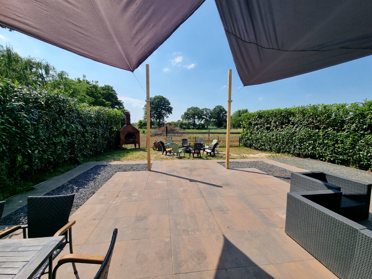 Farm apartment De Casterie is a newly built, exclusive and luxurious apartment in the bocage landscape of Twente, the country estate of the Netherlands. The apartment is located on the edge of a forest, 50 meters from the recreational lake Het Grasbroek. The picturesque Delden with an extensive range of culture and catering can be found a few kilometers away. The area is very suitable for walking and cycling (Landgoed Twickel) and horse riding.