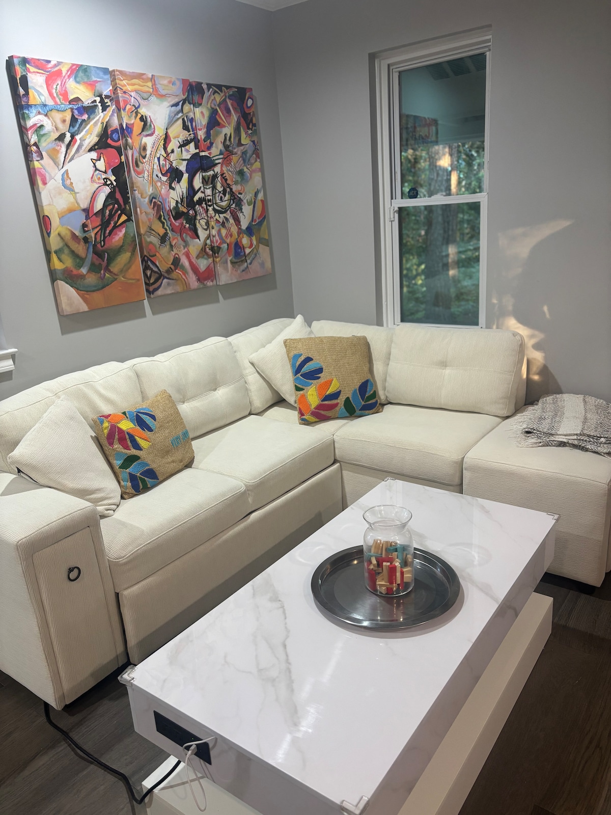 Localizado no centro histórico de Senoia, este apartamento recentemente construído fica a apenas 300 metros da rua principal de Senoia, com restaurantes, boutiques e o mundialmente famoso conjunto "Alexandria" de The Walking Dead. Apartamento luxuoso acima da garagem com cozinha completa, ótimo quarto com sofá-cama queen size, quarto privativo com closet e secadora de roupas empilhada. Wi-Fi de alta velocidade, Smart TV, eletrodomésticos de alta qualidade e controles de HVAC independentes. Até os zumbis precisam de seus confortos.