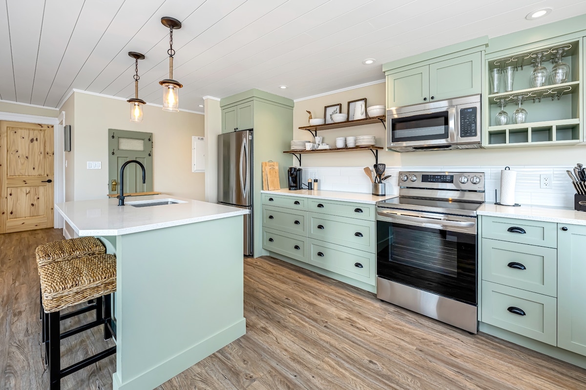 The light filled farmhouse with cathedral ceilings has exquisite pastoral views of Glenora (Valley of Gold). No wonder it is called Golden Valley House! Visit the farm-to-table restaurant by day (Friday-Sunday from Mar-Sept.) or stargaze at night. Watch the farmers tend the vegetables while you cook up a meal in the spacious open kitchen. Biking and hiking trails and swimming within minutes. Family friendly! Vineyards close by, too. Hot yoga classes available on the farm, too.