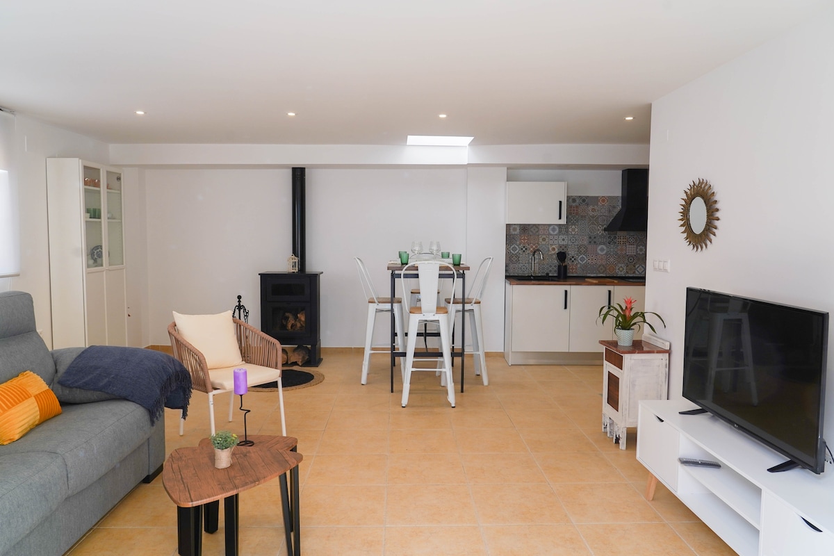 Calle Encina, é um loft de design inspirador que pode ser alugado como uma casa de férias para 2 pessoas, 1 quarto, 1 casa de banho, 1 cozinha, loft grande que pode ser alugado, bem como um ensaio ou espaço de trabalho, A casa é uma moderna totalmente autónoma mobilada com terraço privado e jacuzzi aquecida luxuosa privada ( exterior + custo extra). Durante os dias mais frios, pode desfrutar do fogão a lenha que aquece bem o espaço e aquecido (madeira incluída).