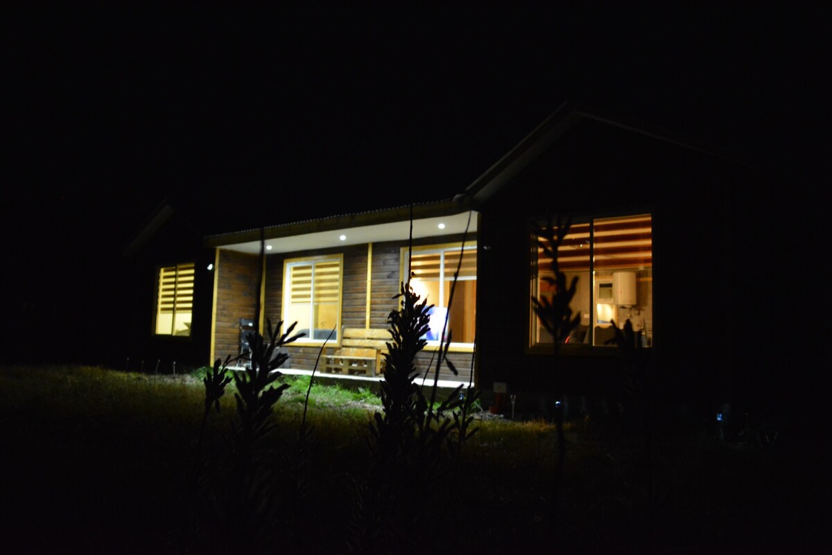 Crea recuerdos inolvidables en este alojamiento único y familiar. capacidad 4 personas. Tiene una vista maravillosa hacia la ciudad de Coyhaique, esta a 15 minutos del centro . La vivienda cuenta con 2 dormitorios, 1 baño, sala de estar comedor, cocina, 65 mts 2. Construcción sostenible, con calefacción a pellet, ventanas con termo panel. El mobiliario es nuevo, cada cama tiene frazada calienta cama. La casa esta emplazada en 1/2 hectárea. Proporcionamos canasto para desayuno.